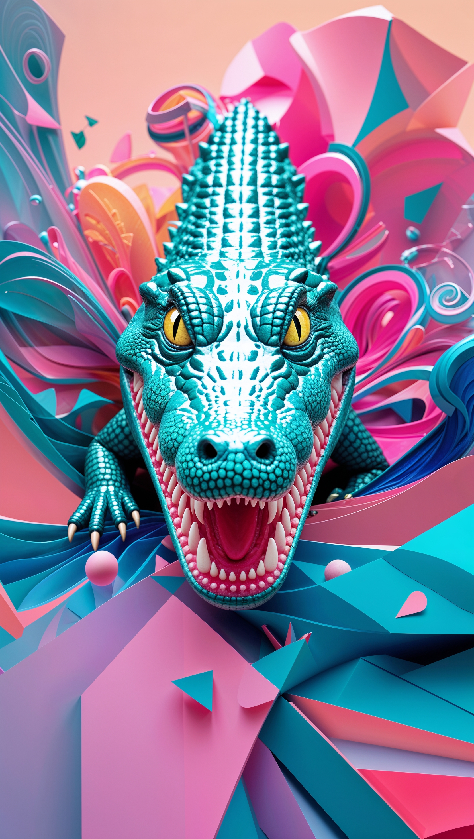 1664x2944 Colorful geometric patterns iPhone wallpaper with alligator