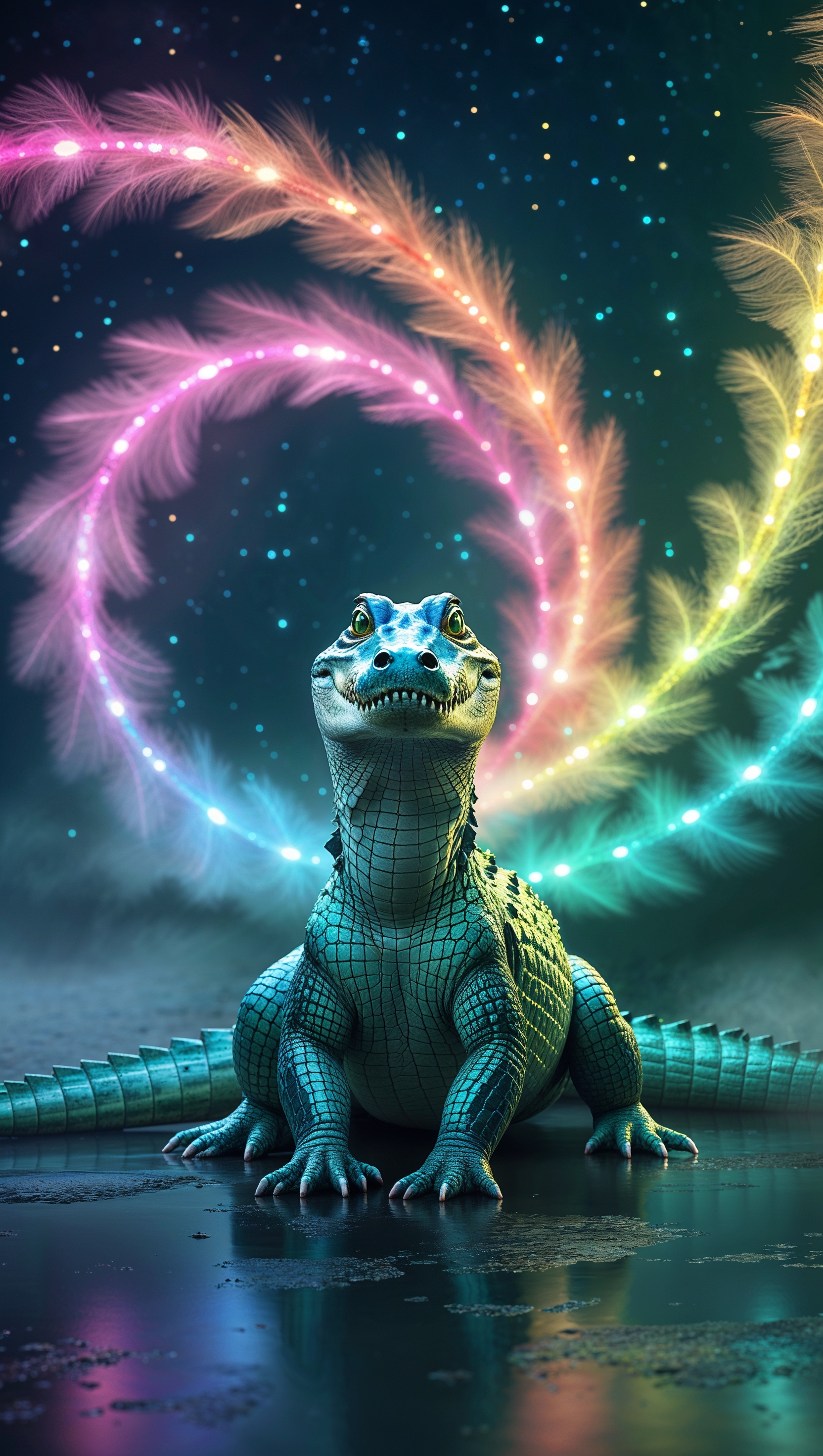 1664x2944 iPhone wallpaper with alligator and rainbow lights
