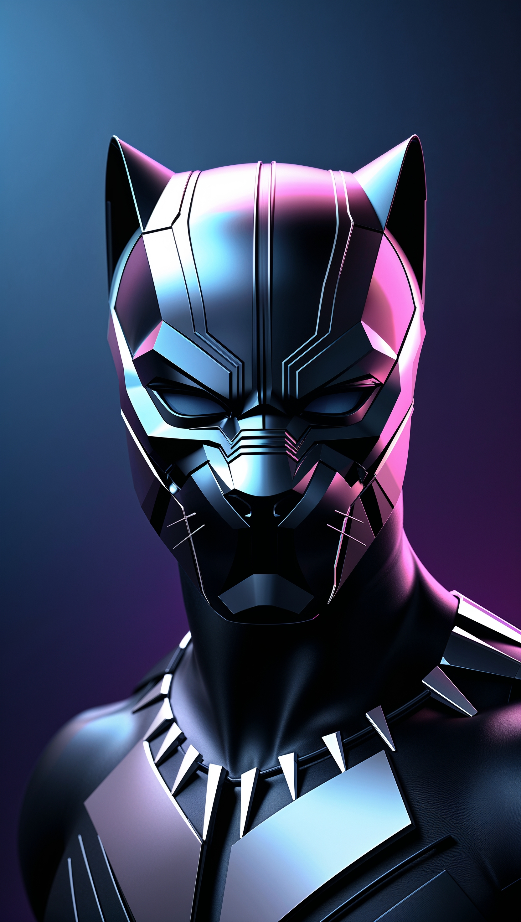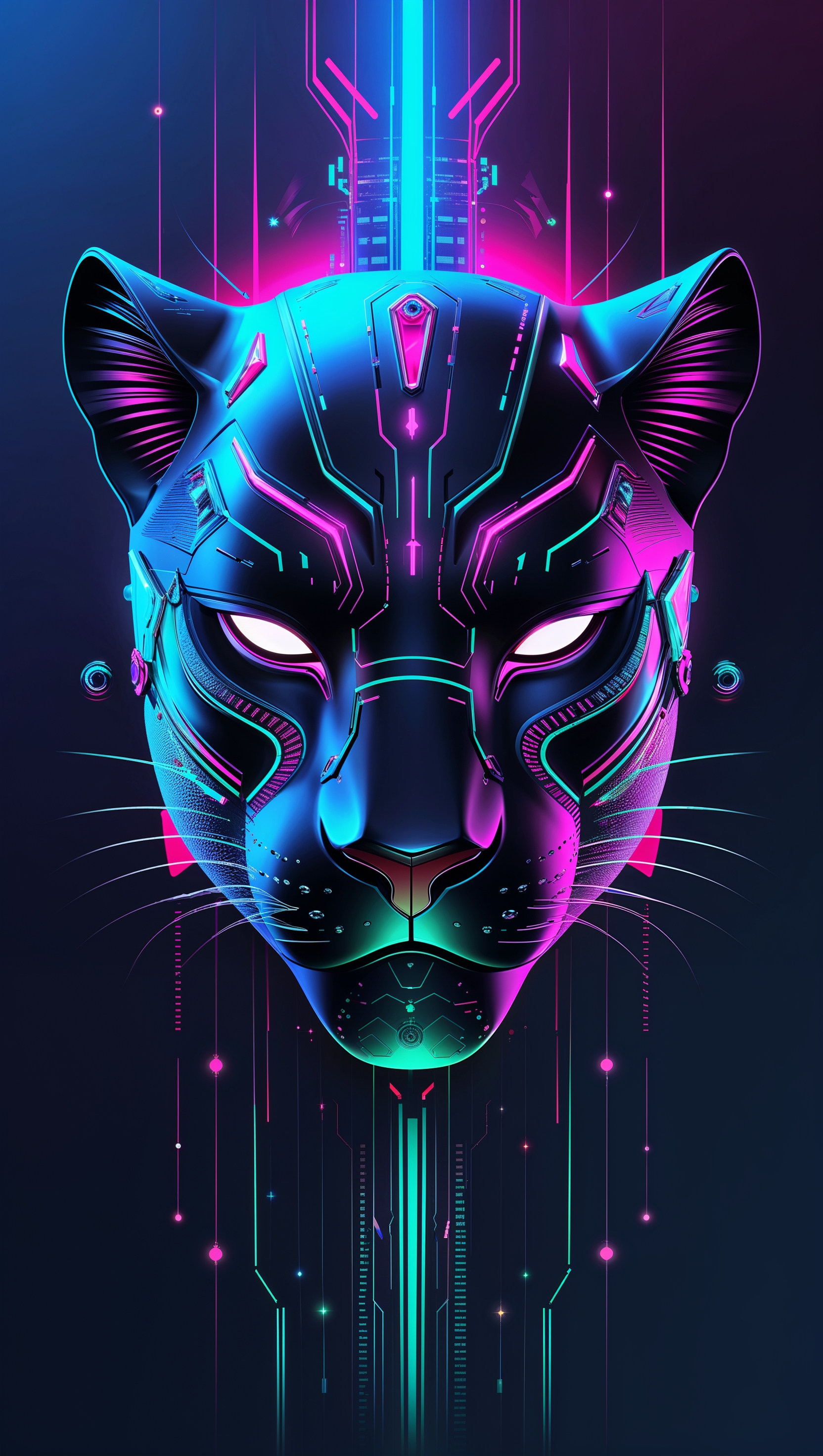 1664x2944 Abstract art of Black Panther mask with neon effects, vertical wallpaper for iPhone