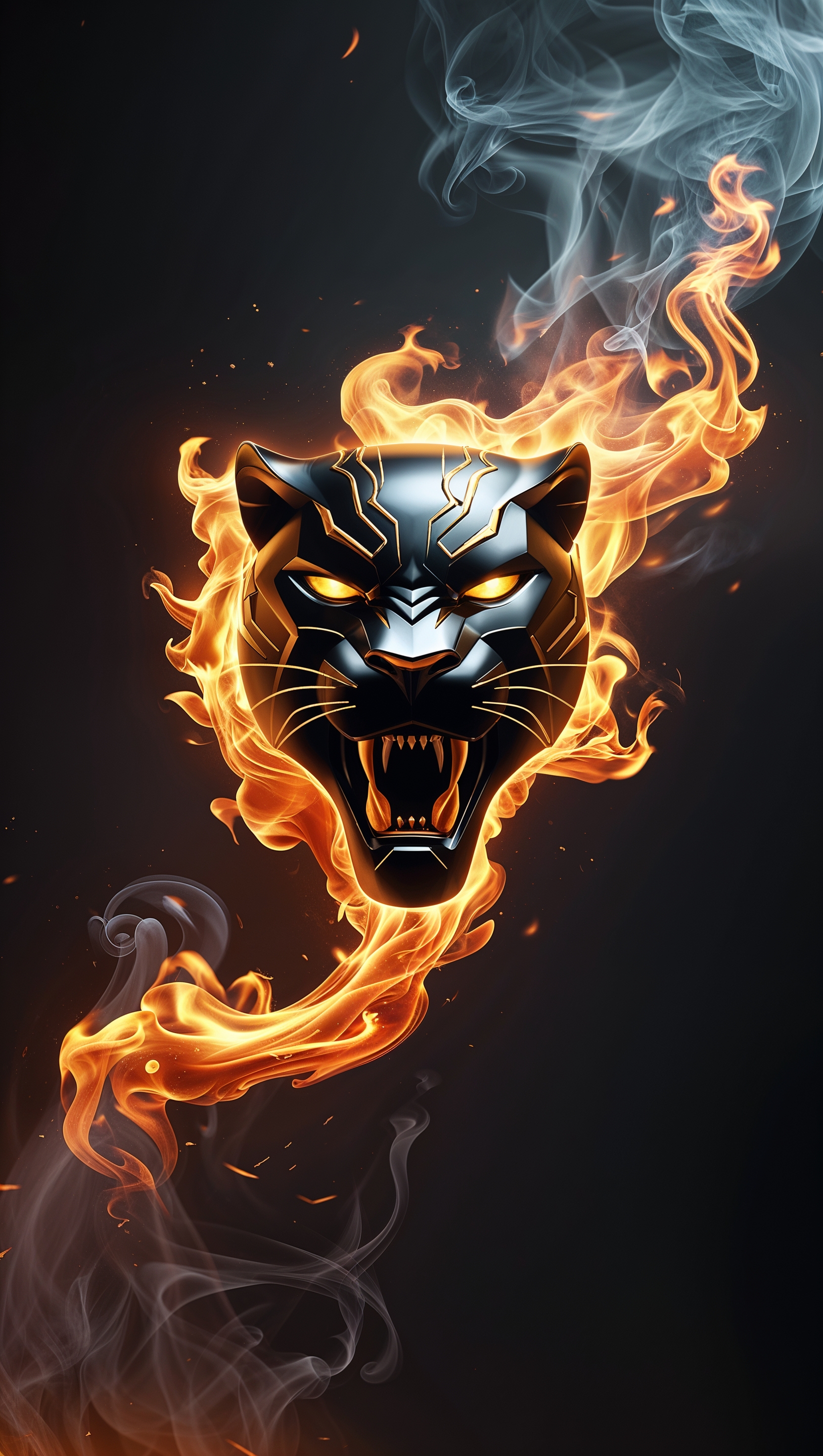 1664x2944 Black Panther logo made of fire and smoke, dark background, iPhone wallpaper