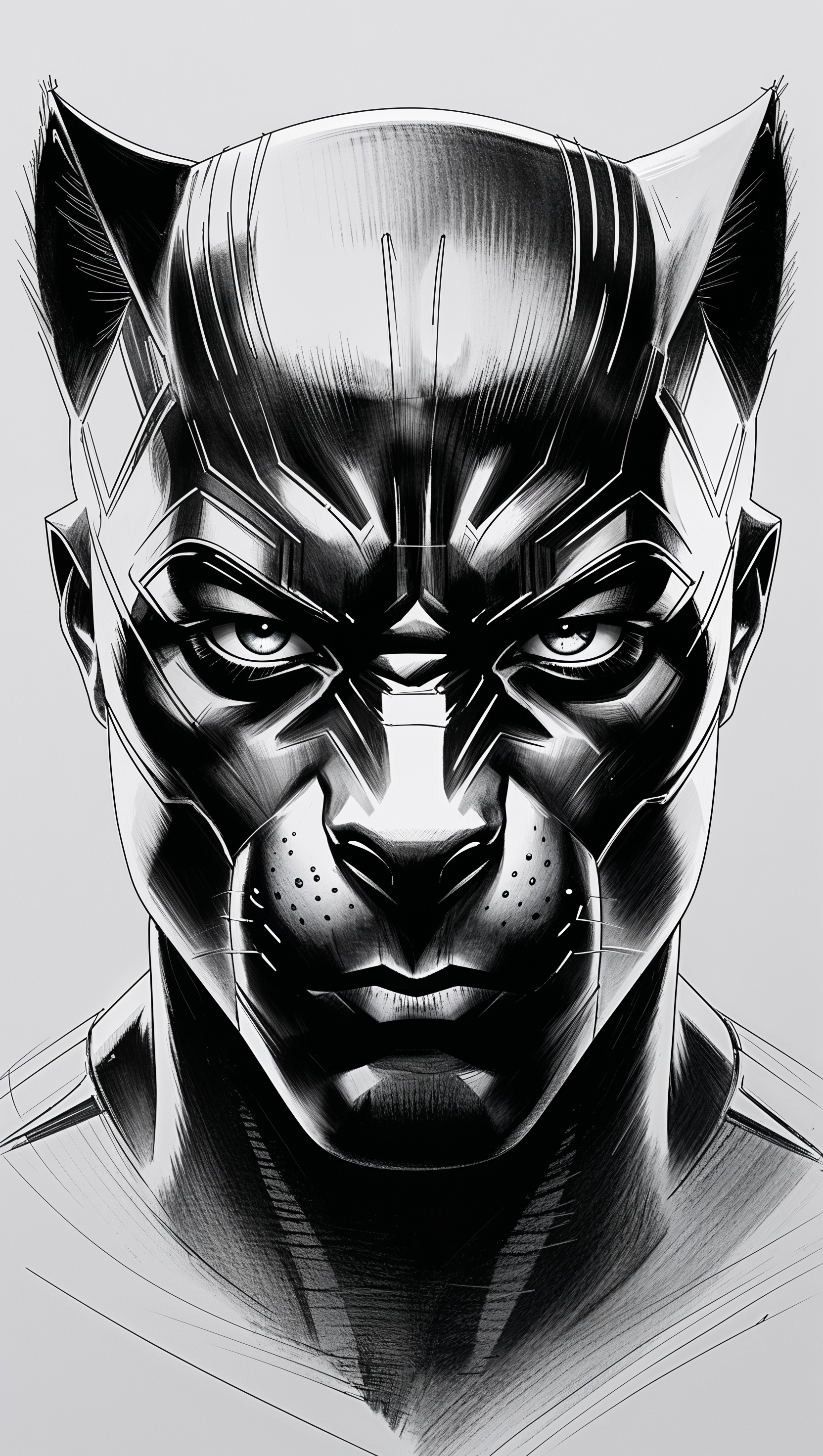 1664x2944 Sketch drawing of Black Panther face, pencil art style, clean wallpaper