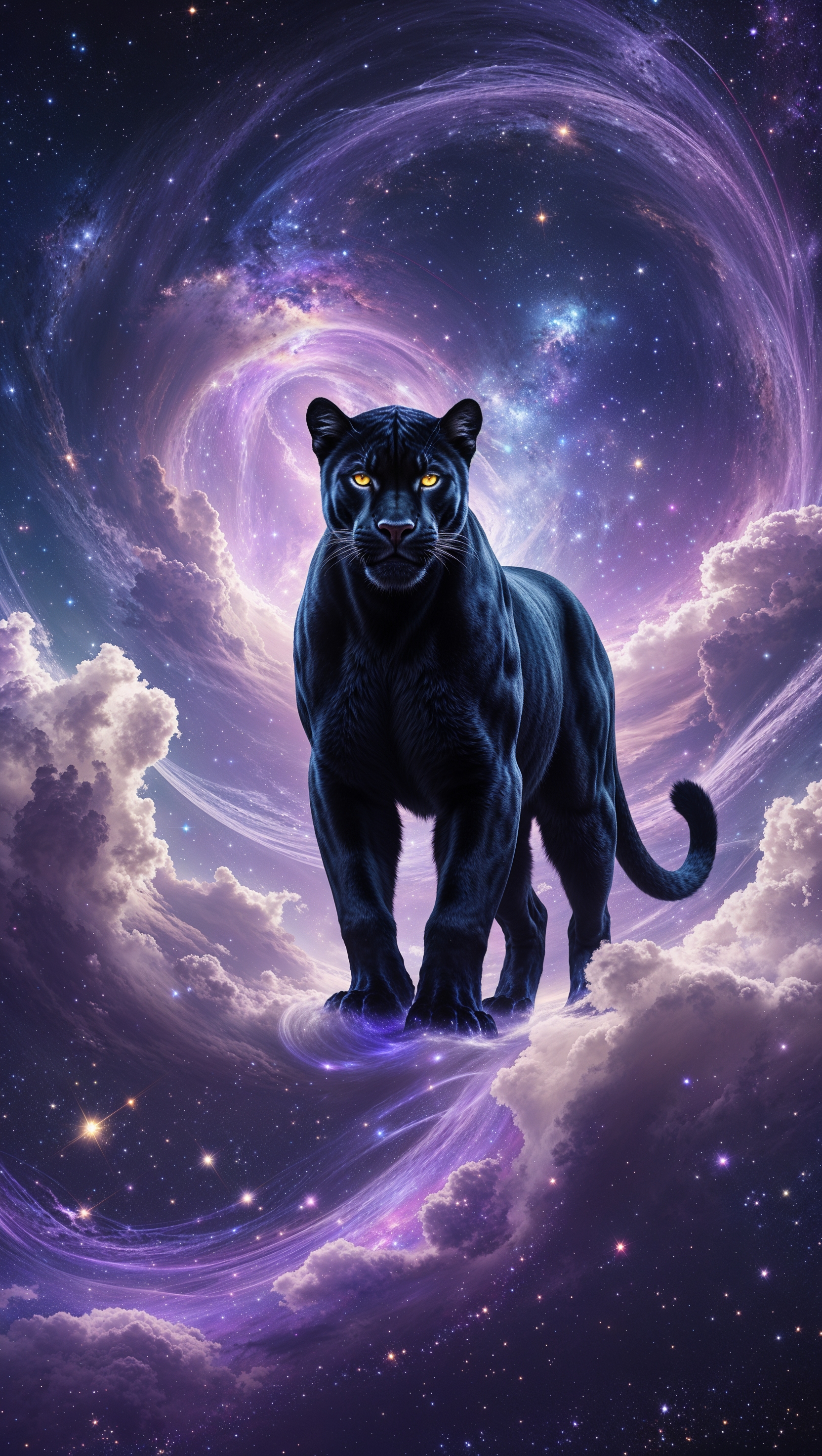 1664x2944 Black Panther in galaxy background, stars and cosmic energy