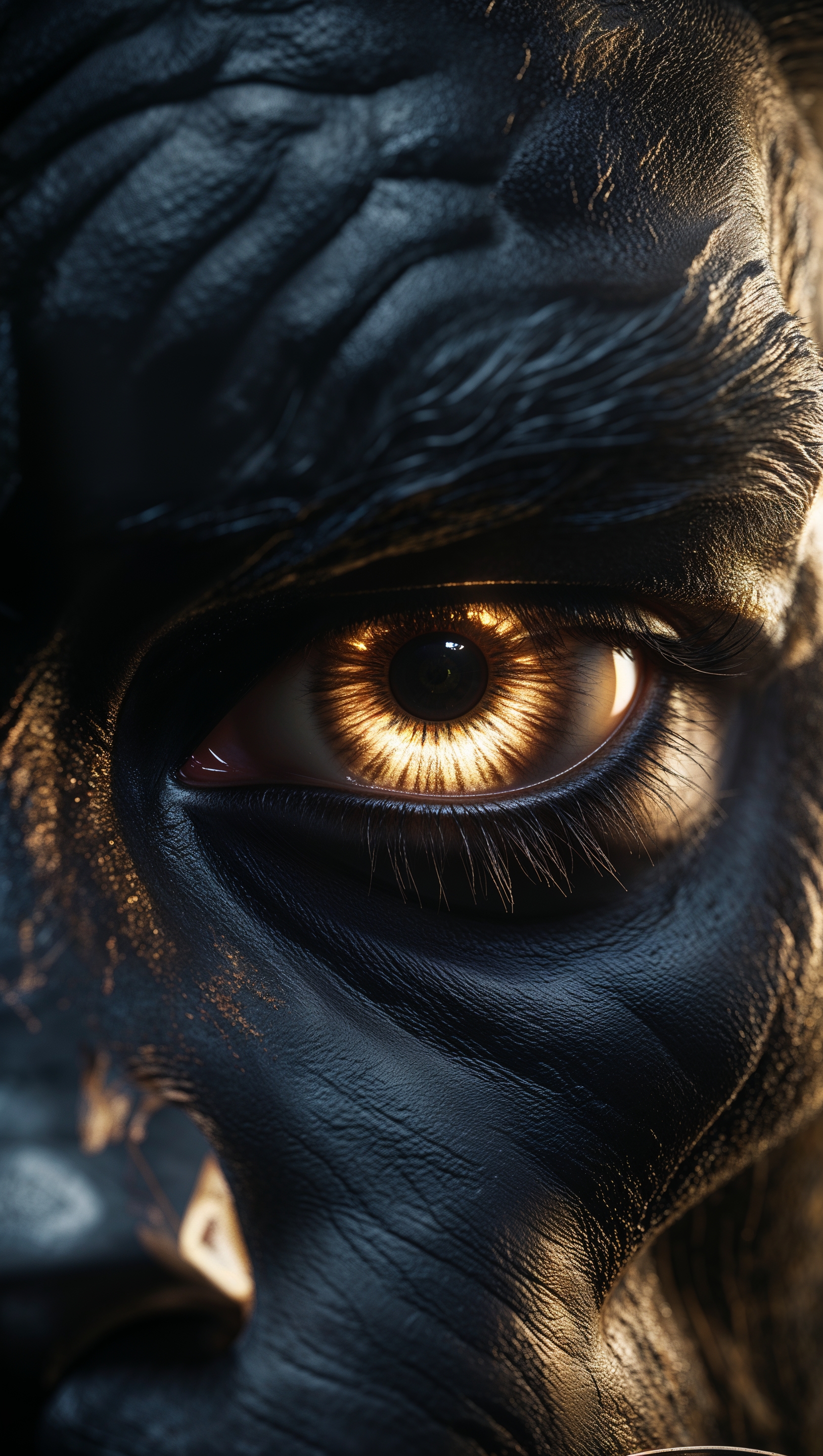 1664x2944 Close-up of Black Panther eyes glowing in the dark, mysterious feel