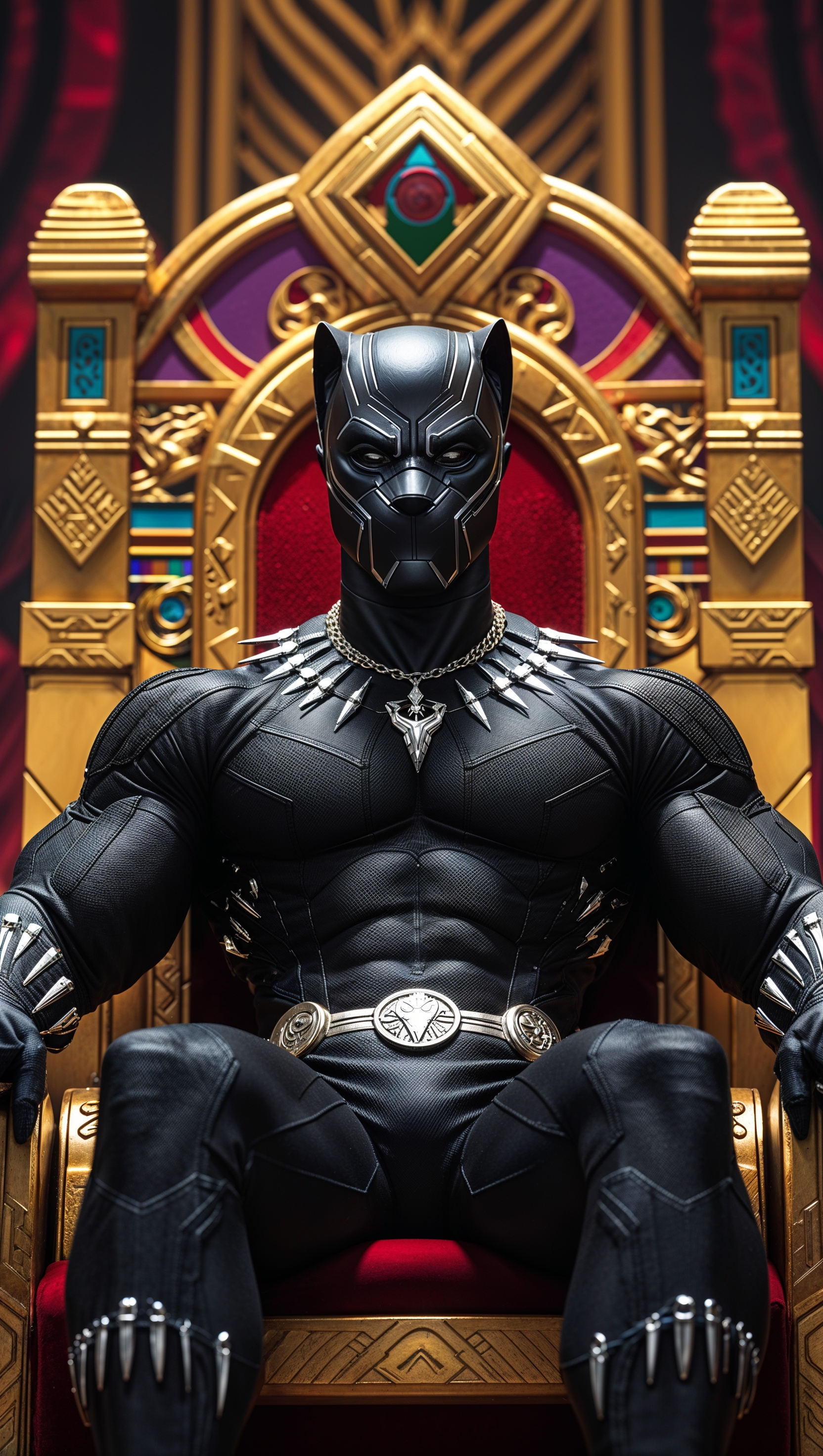 1664x2944 Black Panther on the Wakandan throne, royal and powerful atmosphere