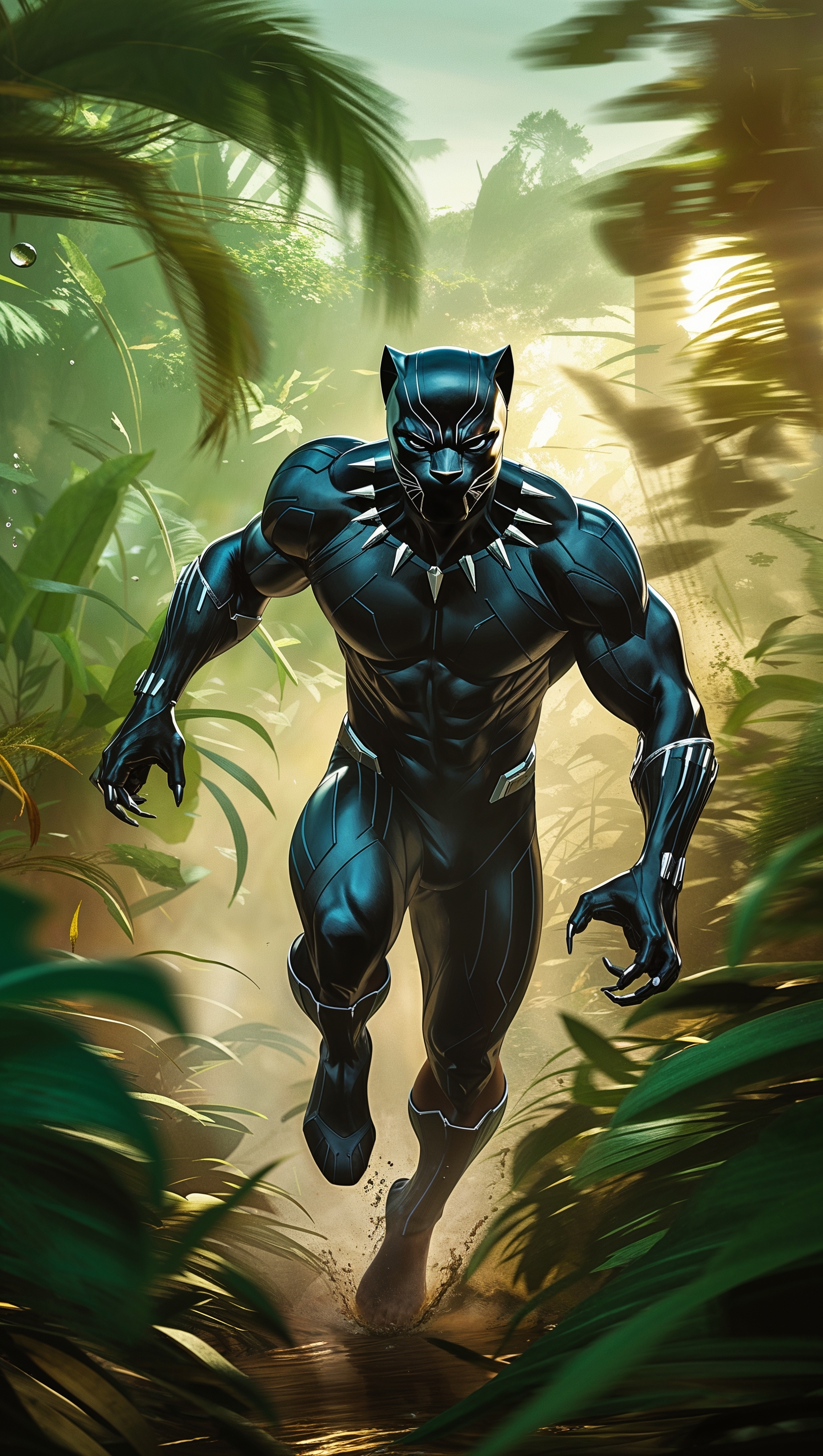 1664x2944 Black Panther running through the jungle, motion blur effect, 4K iPhone wallpaper