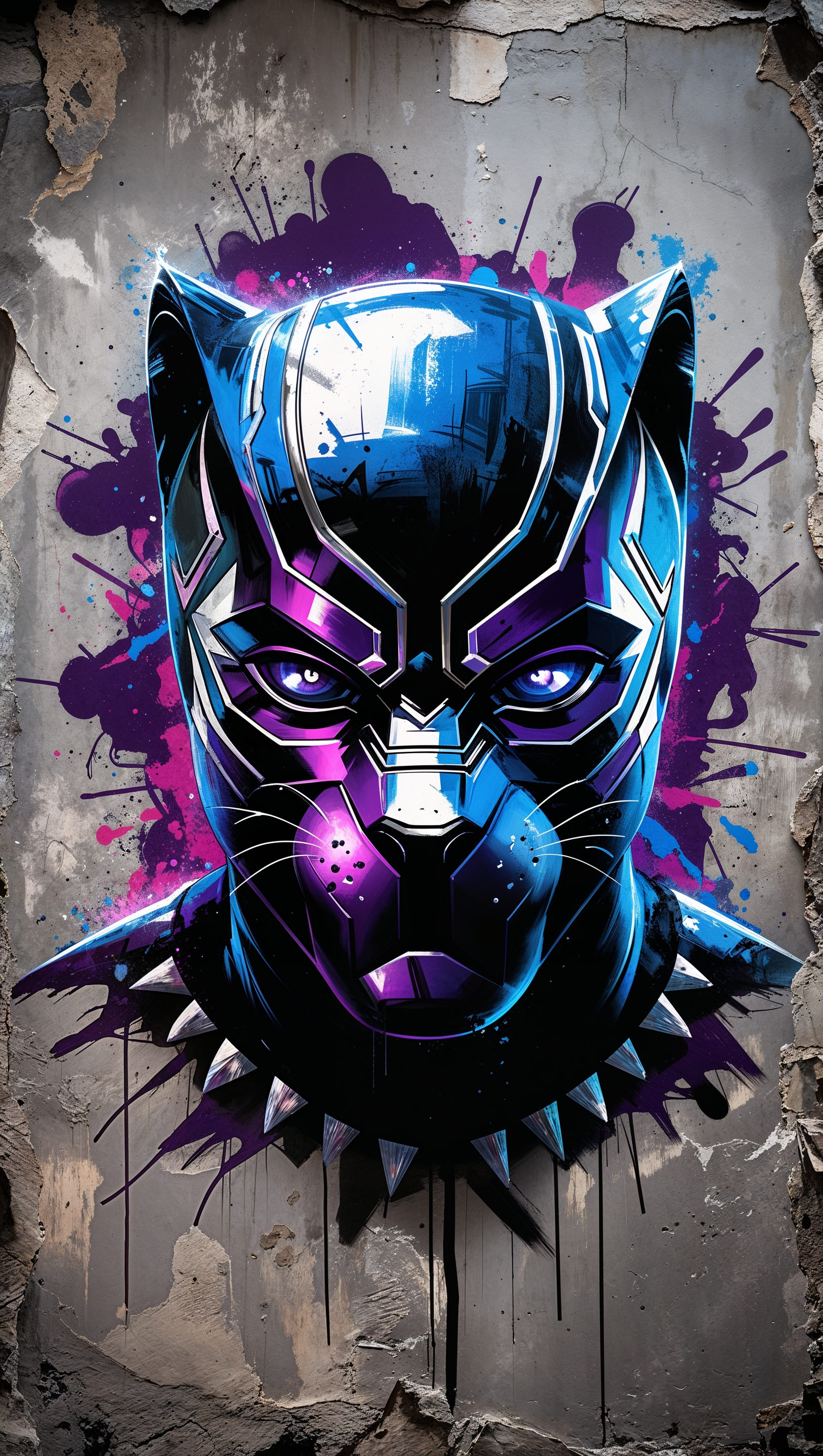 1664x2944 Black Panther graffiti art on wall, street art style, grungy iPhone wallpaper