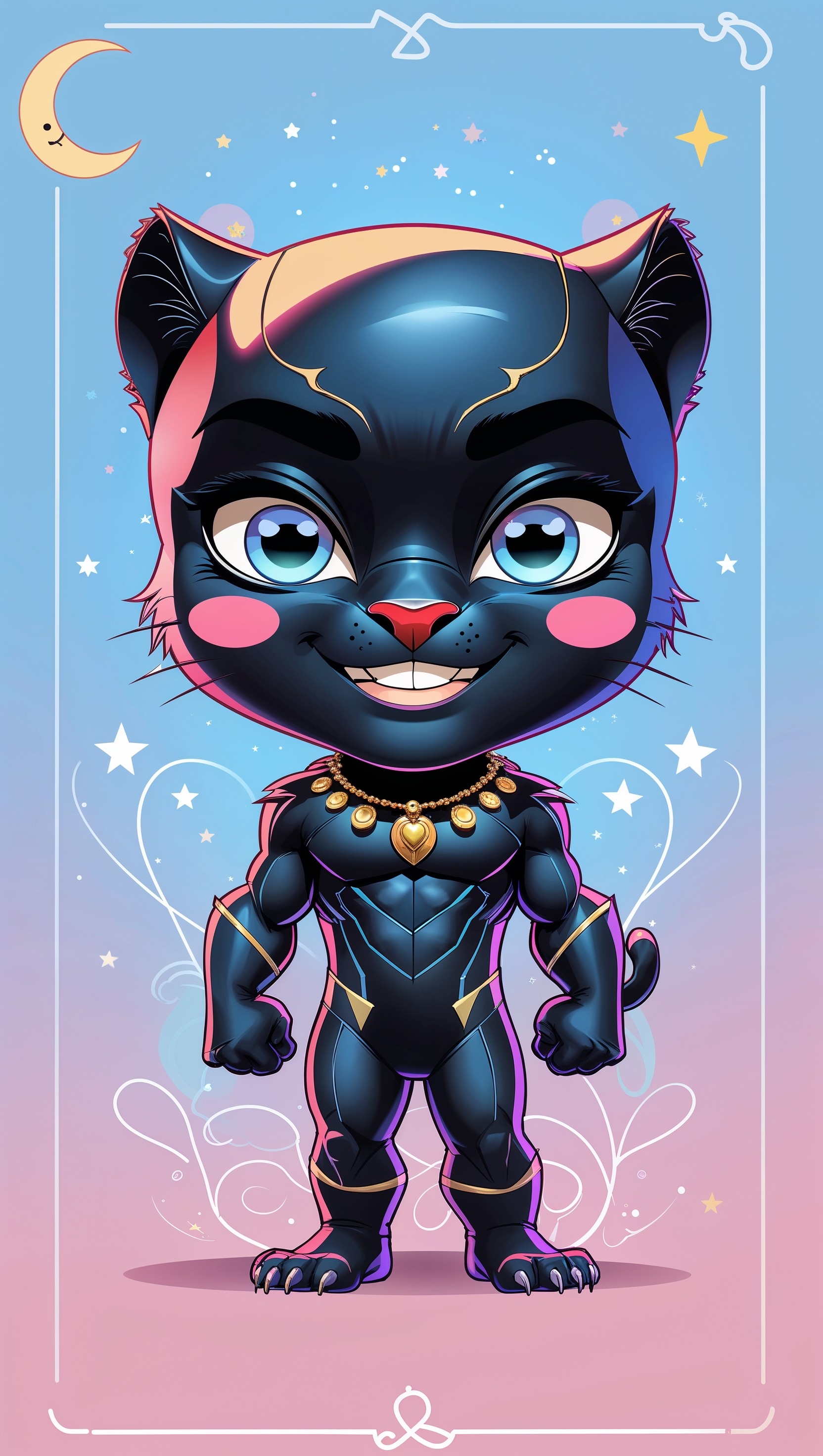 1664x2944 Chibi-style cute Black Panther, kawaii iPhone wallpaper