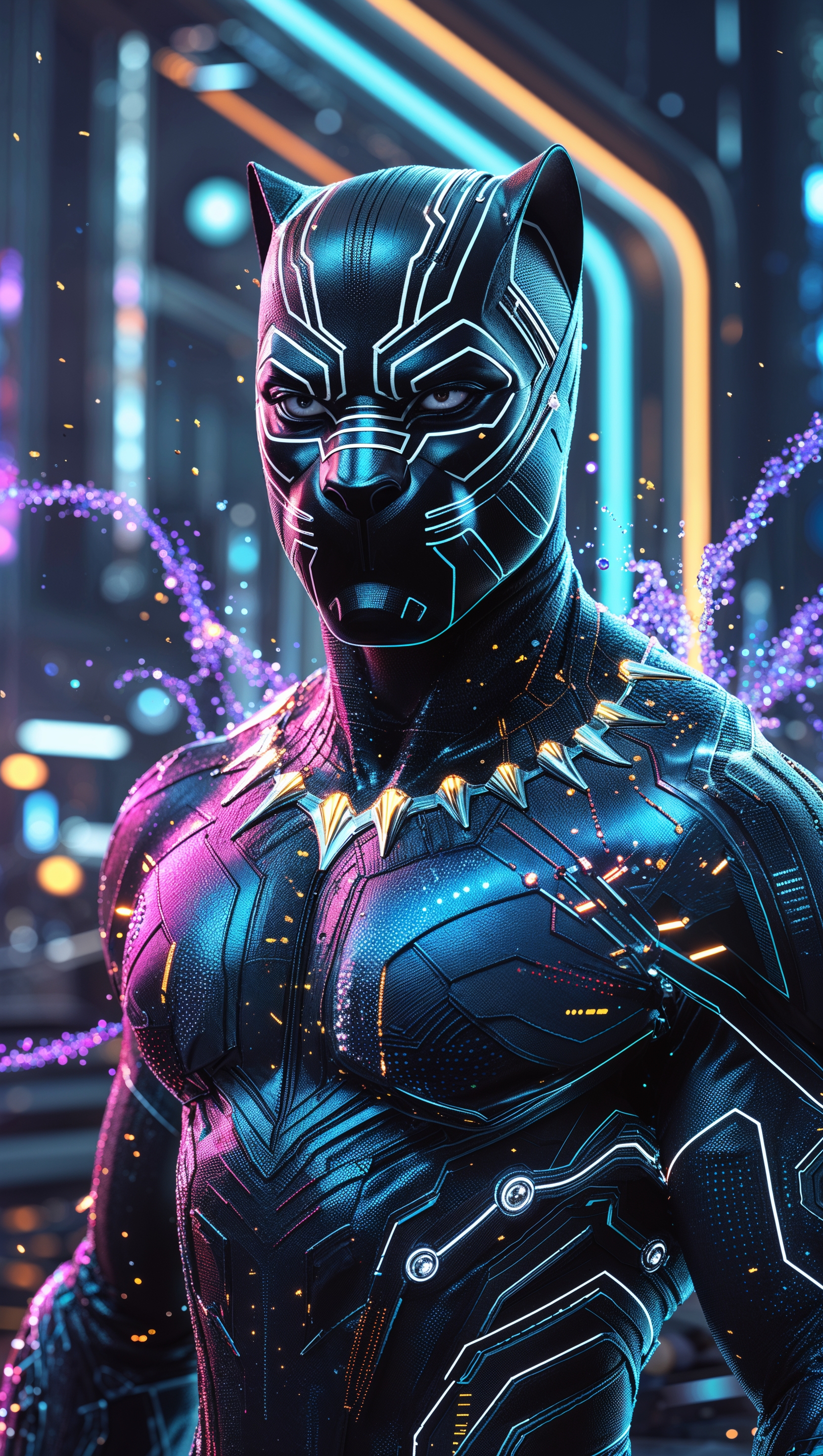 1664x2944 Black Panther made of glowing digital particles, high-tech theme