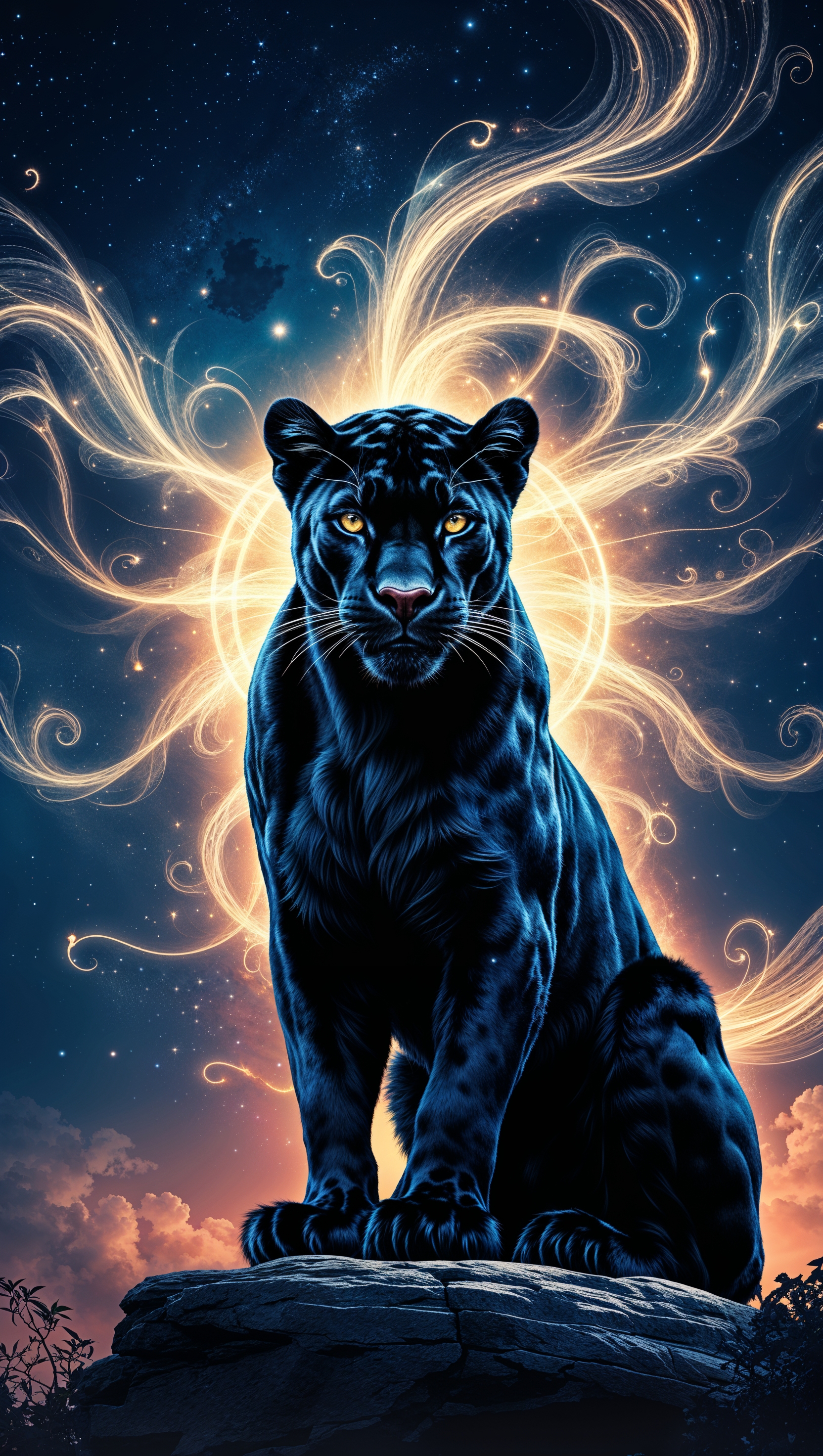 1664x2944 Black Panther spirit animal with energy aura, magical wallpaper for iPhone