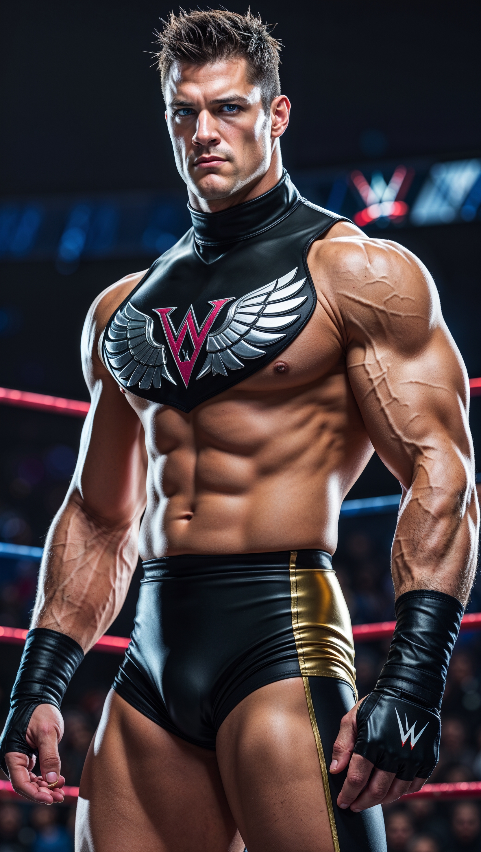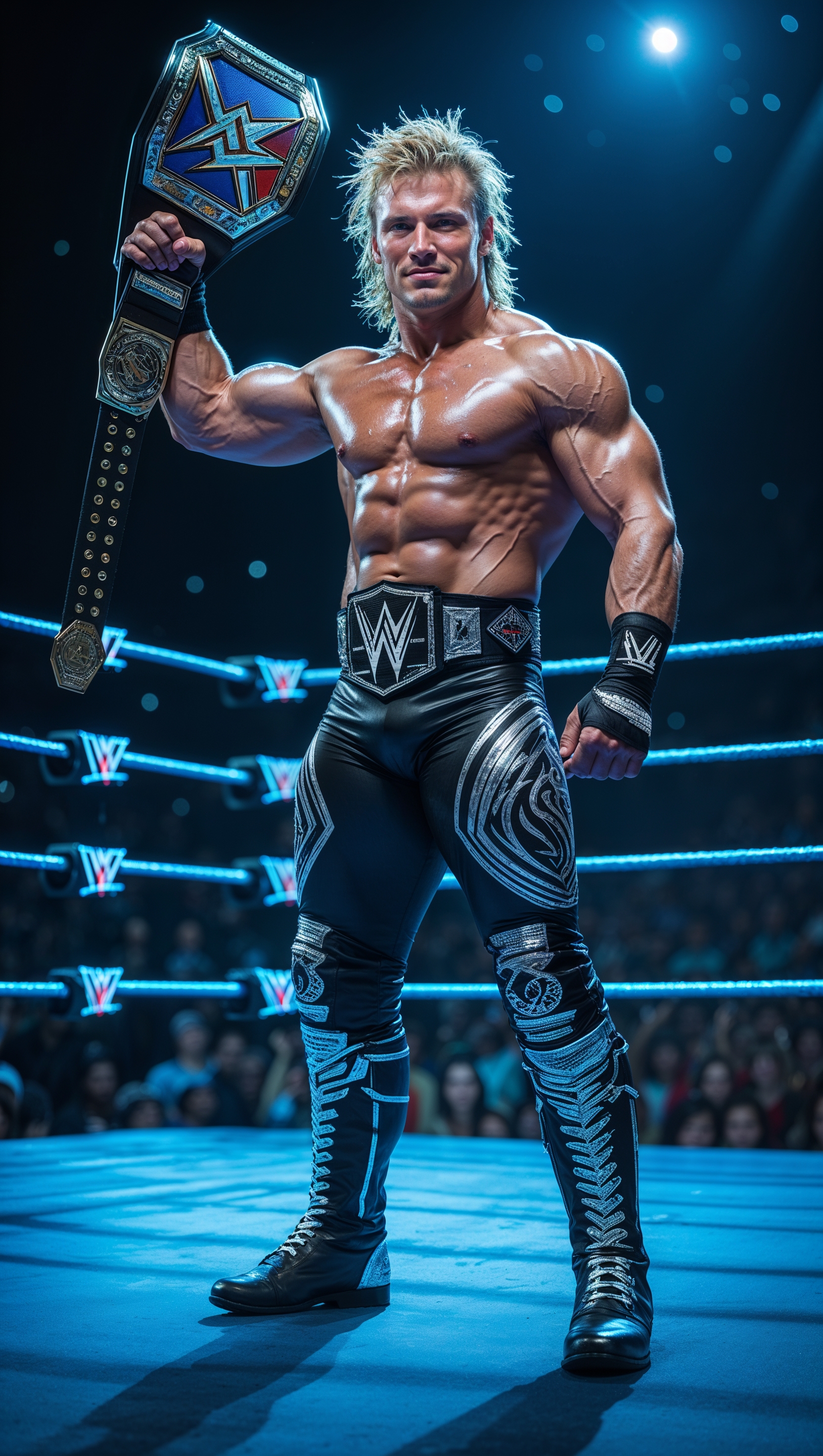 1664x2944 Cody Rhodes victorious in the ring with blue light effects