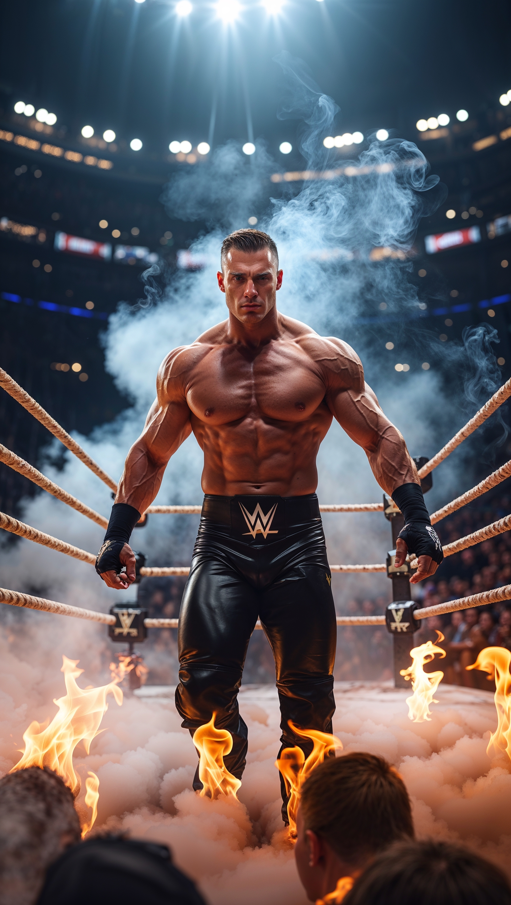 1664x2944 Cinematic shot of Cody Rhodes entering the ring with fire and smoke