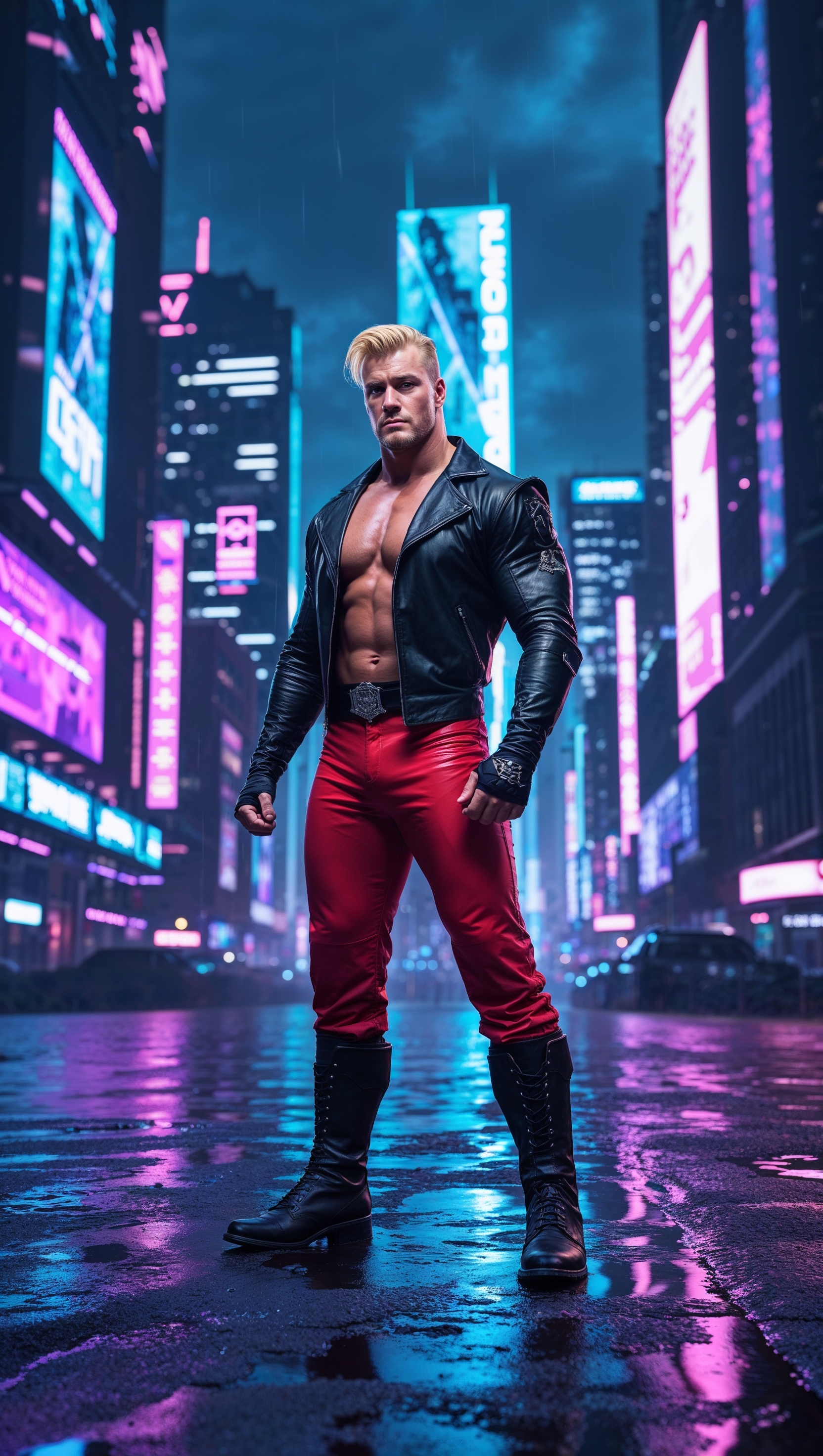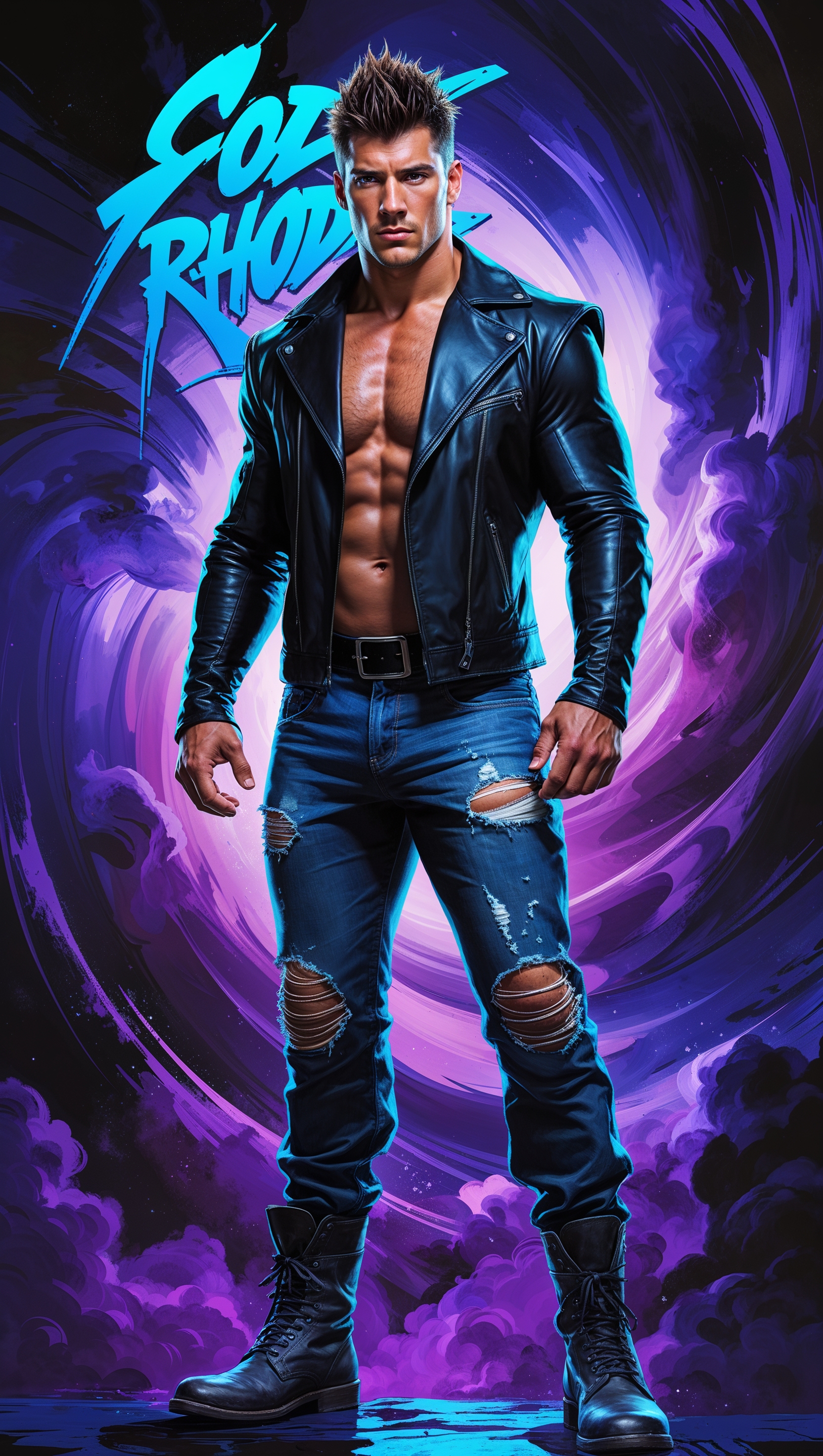 1664x2944 Close-up of Cody Rhodes with neon glow effects