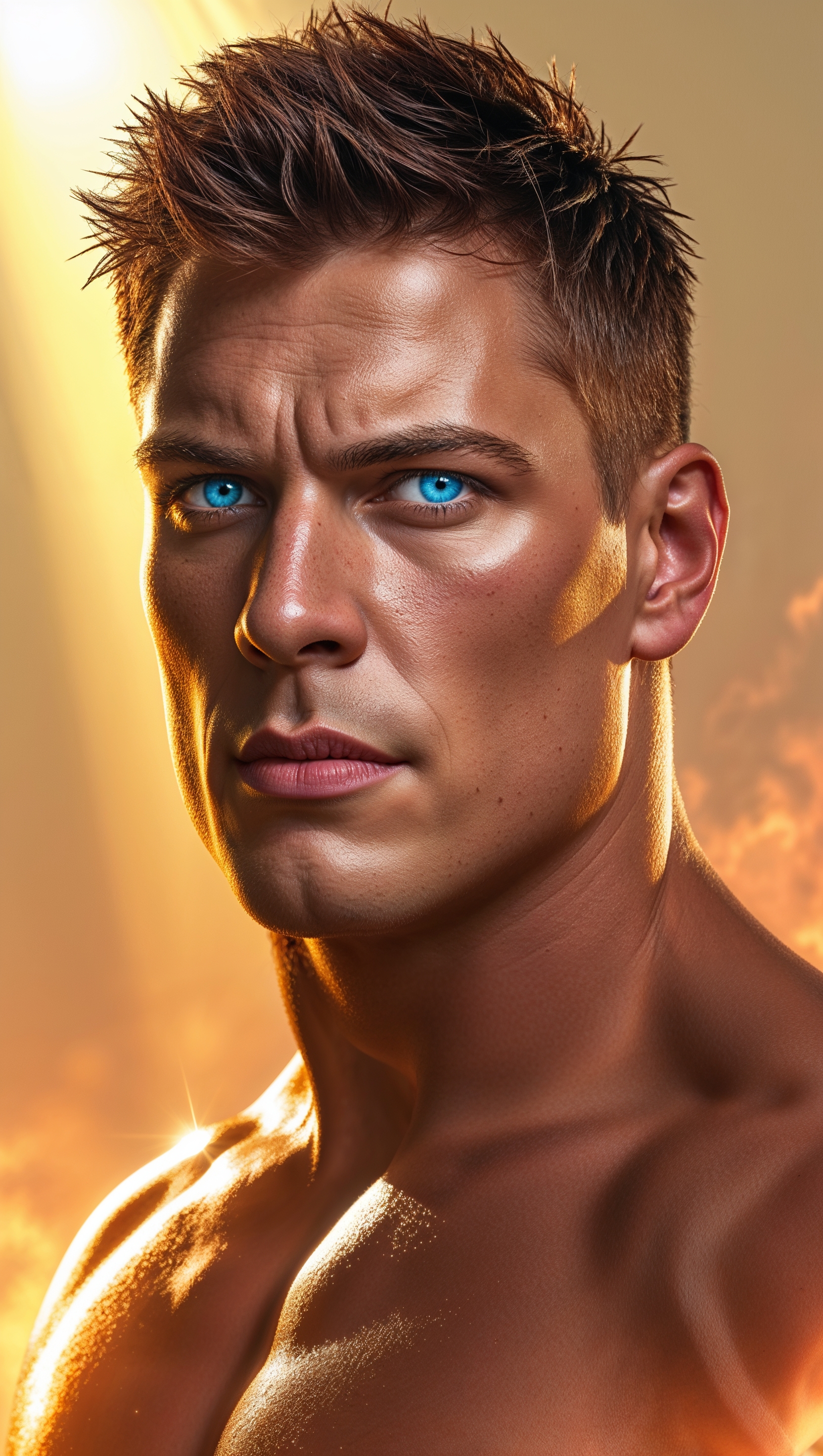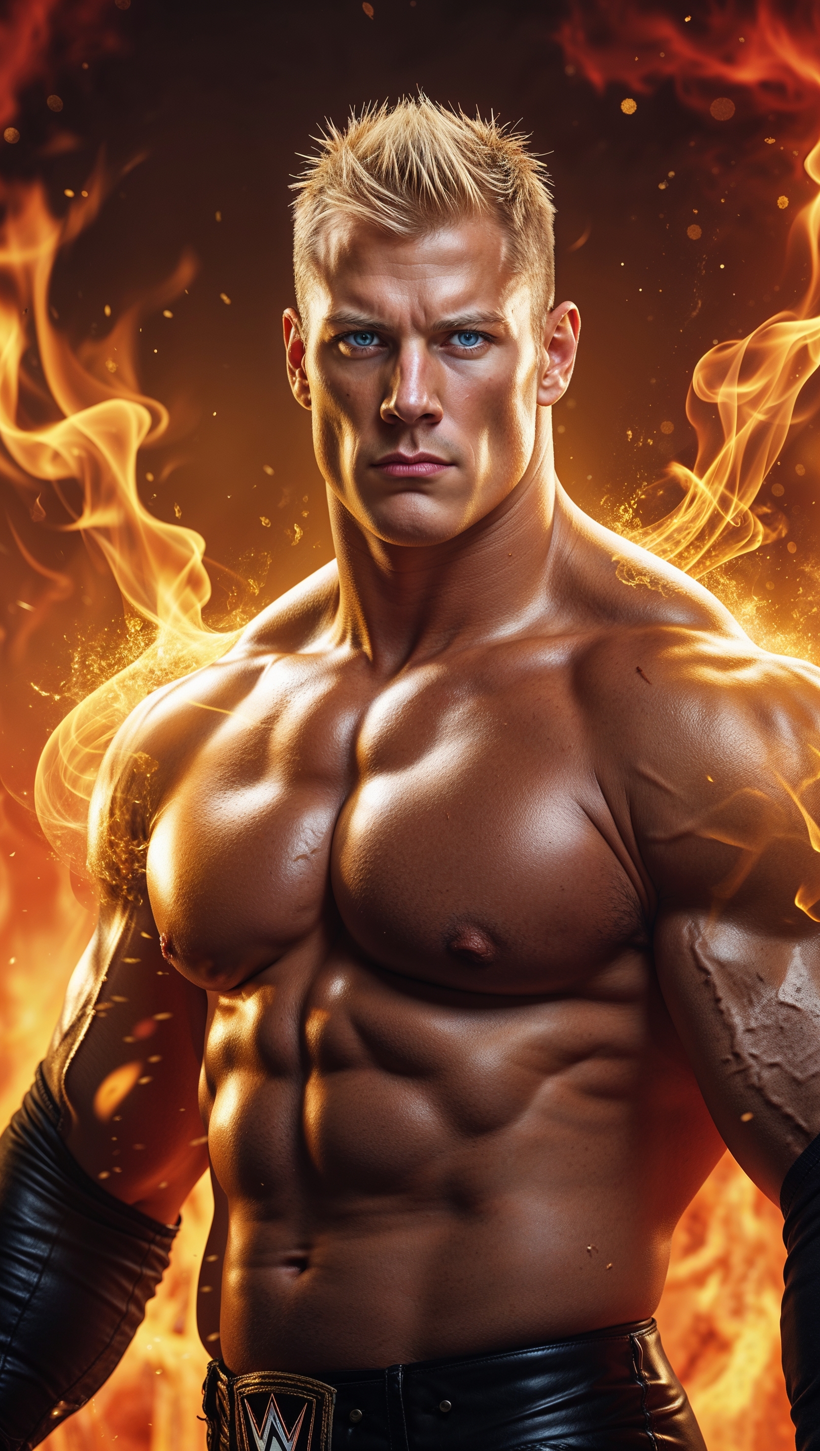 1664x2944 Cody Rhodes with fire flames and golden lighting effects