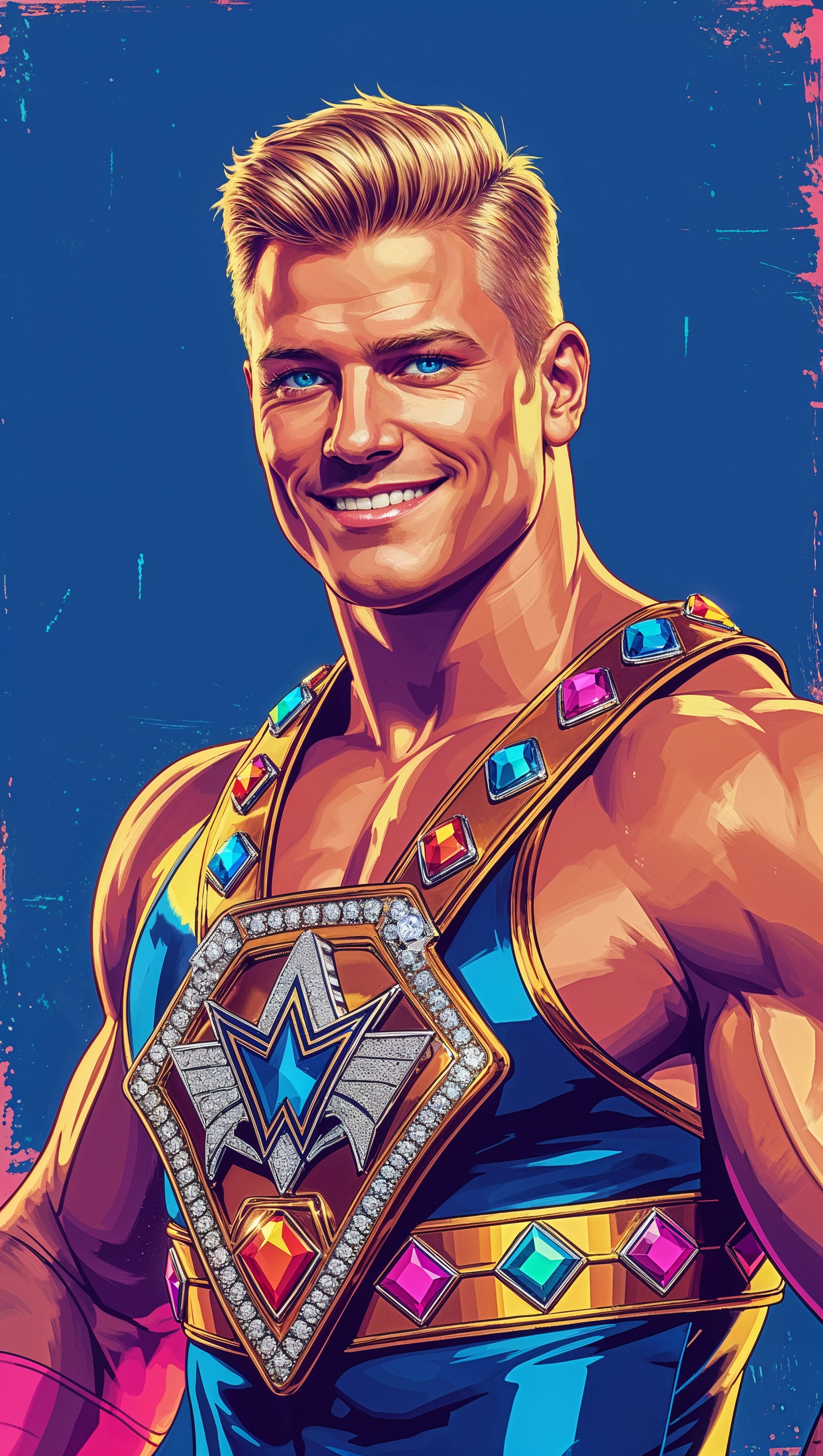 1664x2944 Cartoon-style portrait of Cody Rhodes for iPhone wallpaper