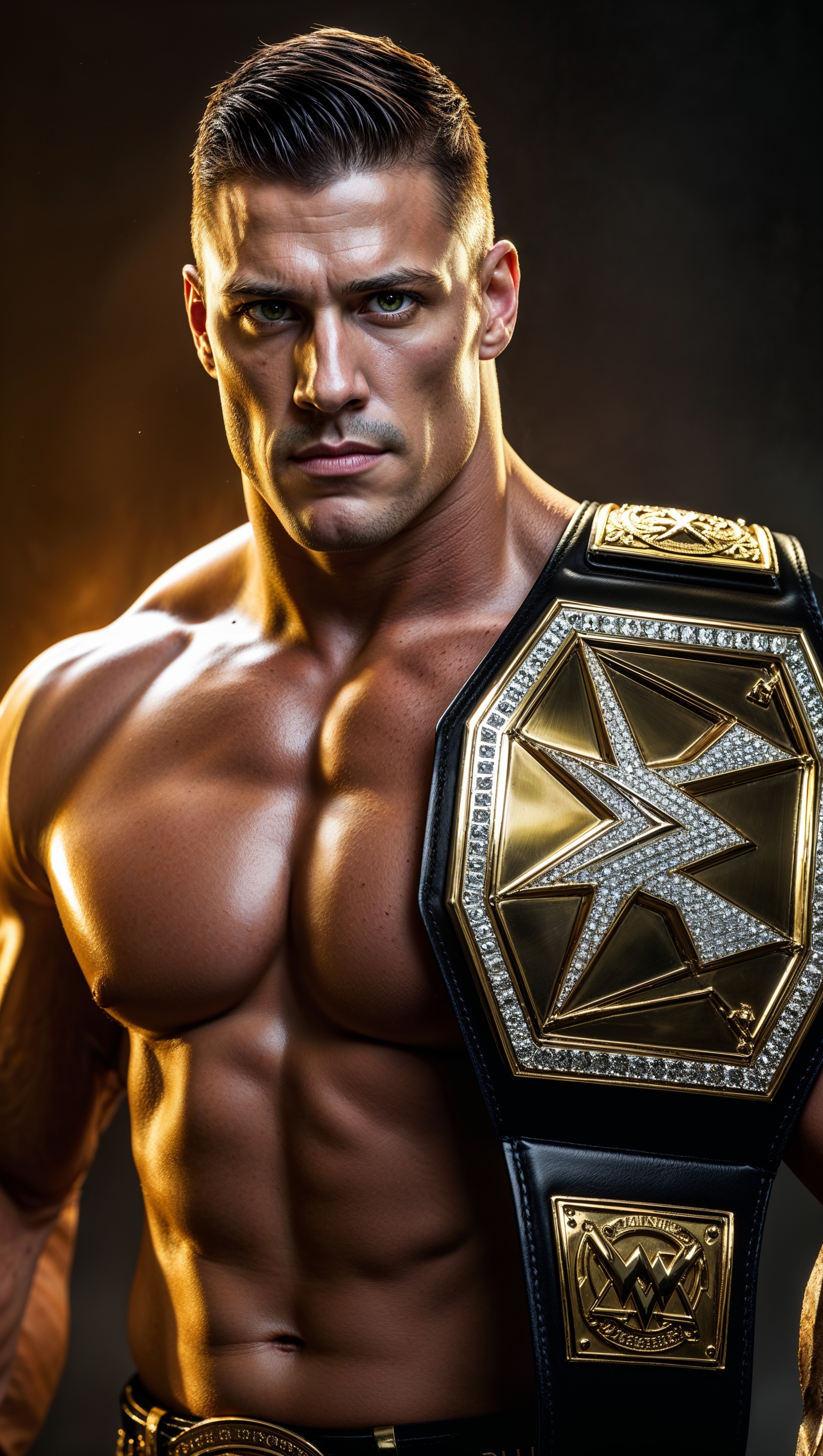 1664x2944 Cody Rhodes with championship belt under dramatic lighting