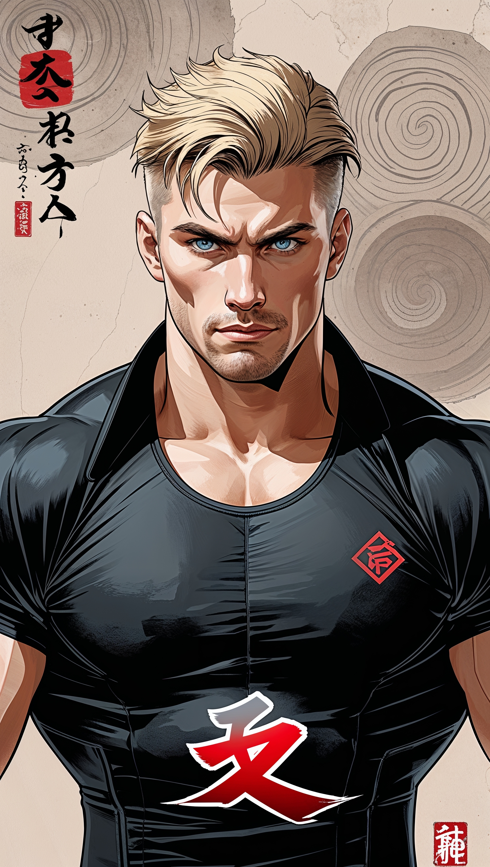 1664x2944 Cody Rhodes in Japanese ink-style illustration