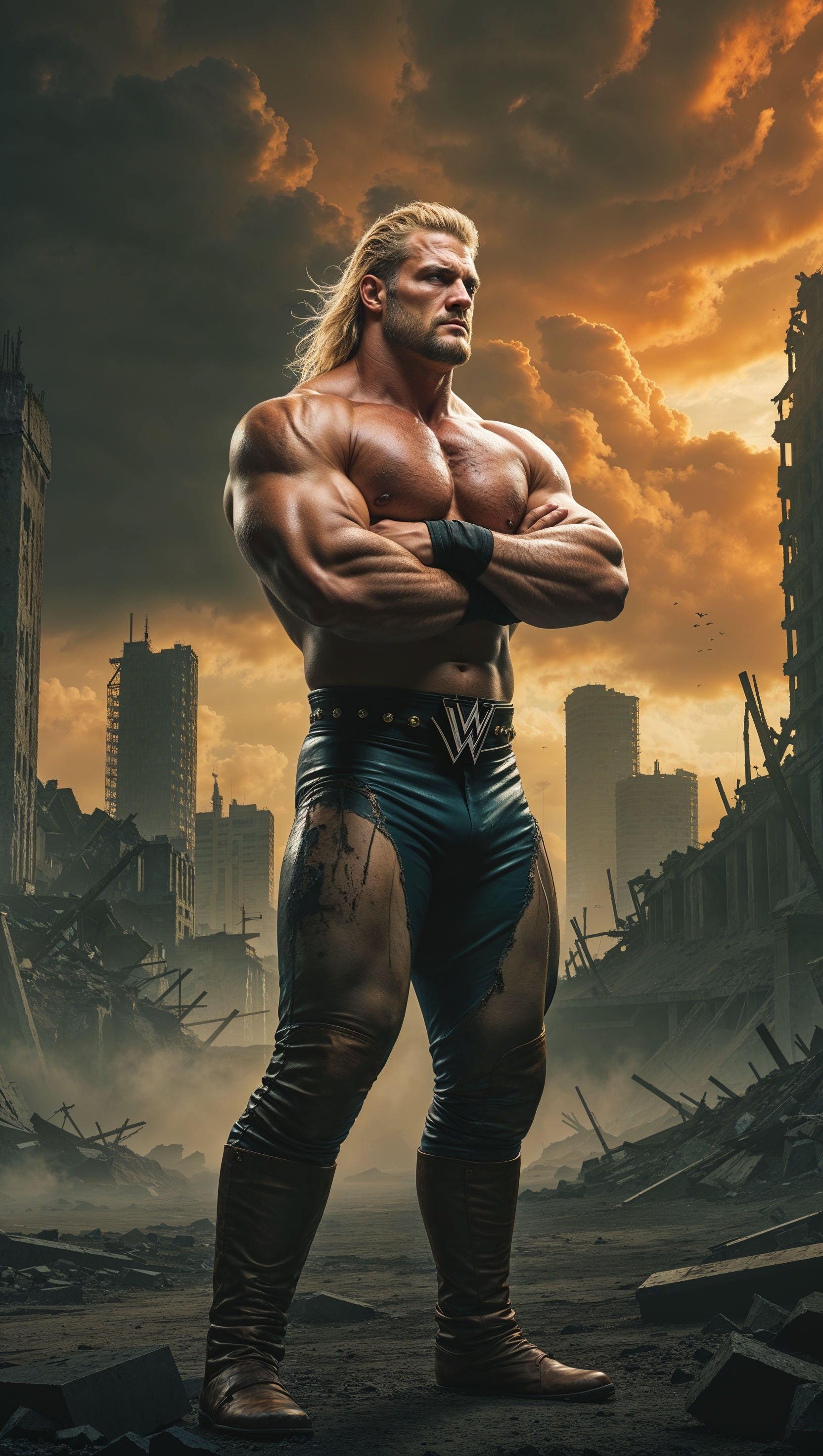 1664x2944 Fantasy wallpaper of Cody Rhodes in a post-apocalyptic world