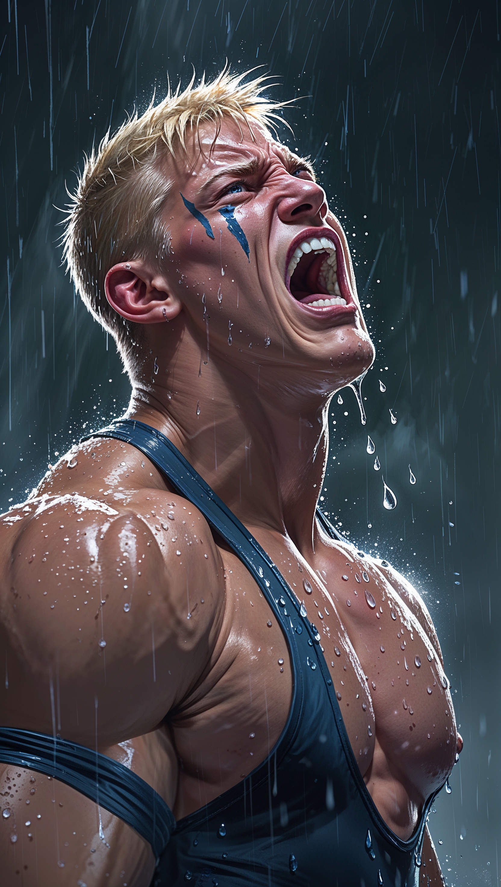 1664x2944 Cody Rhodes screaming with rain and mist effects
