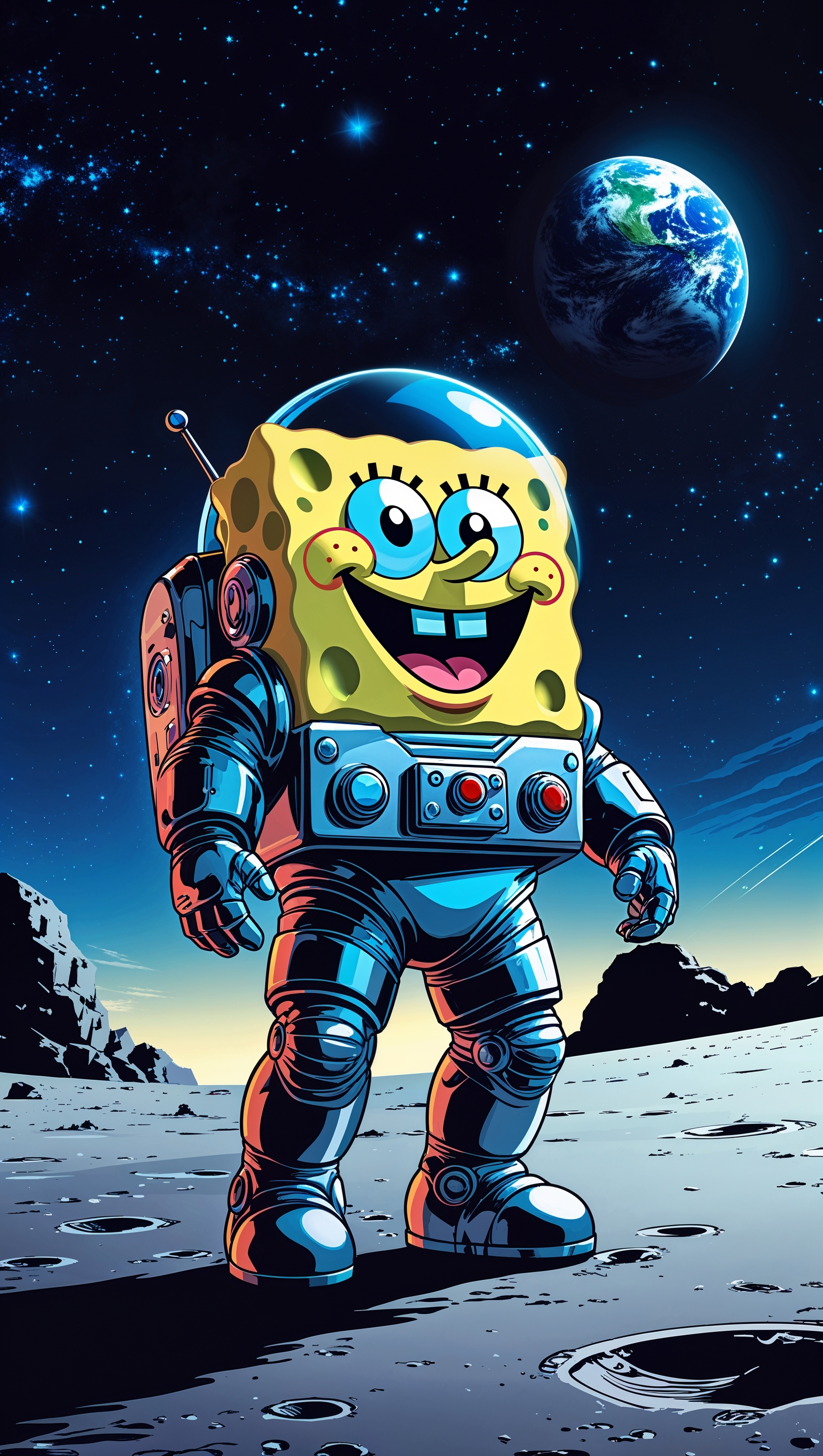 1664x2944 Spongebob in a space suit on the moon for iPhone wallpaper