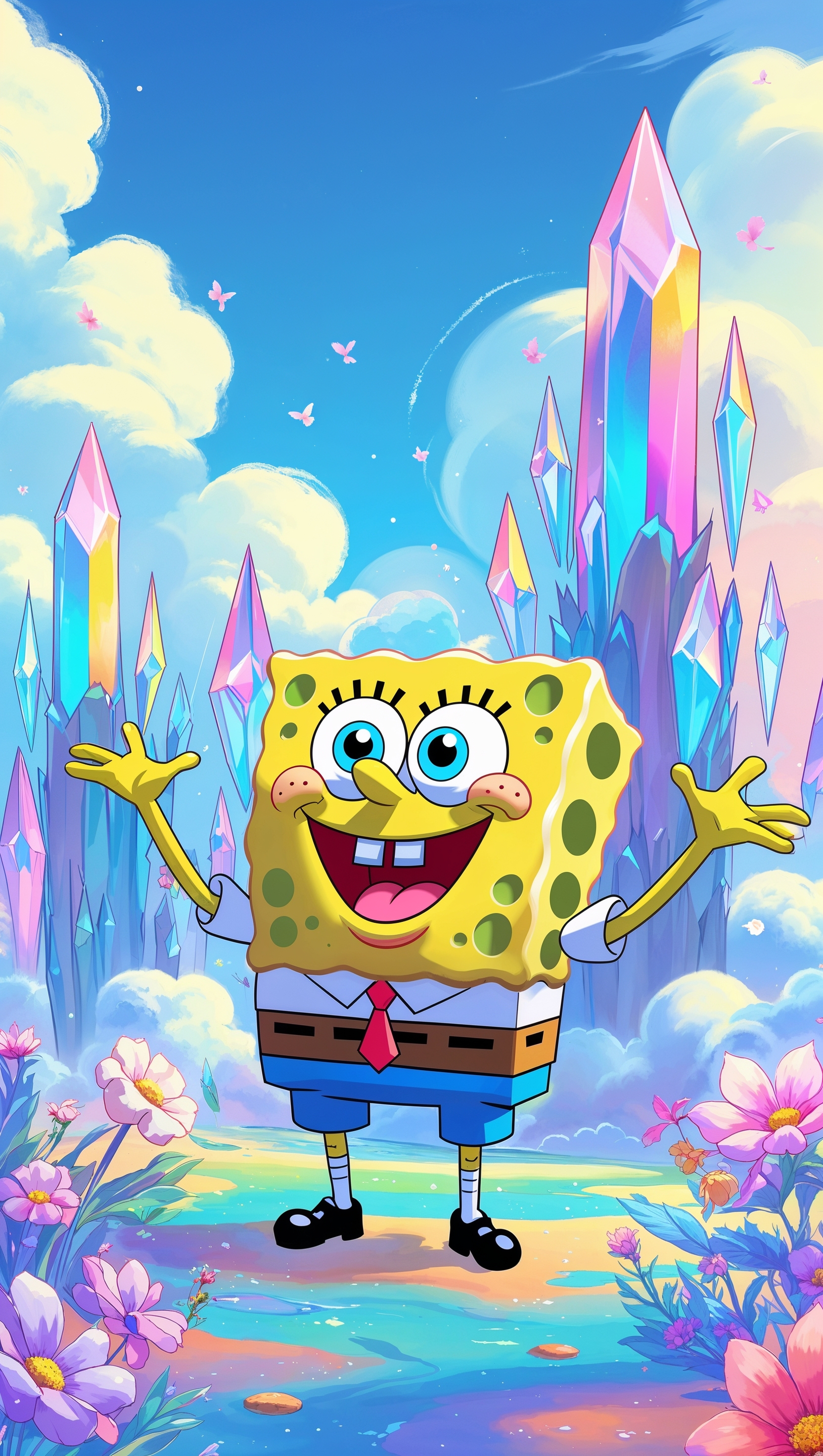 1664x2944 Spongebob in a pastel-colored fantasy world for iPhone wallpaper