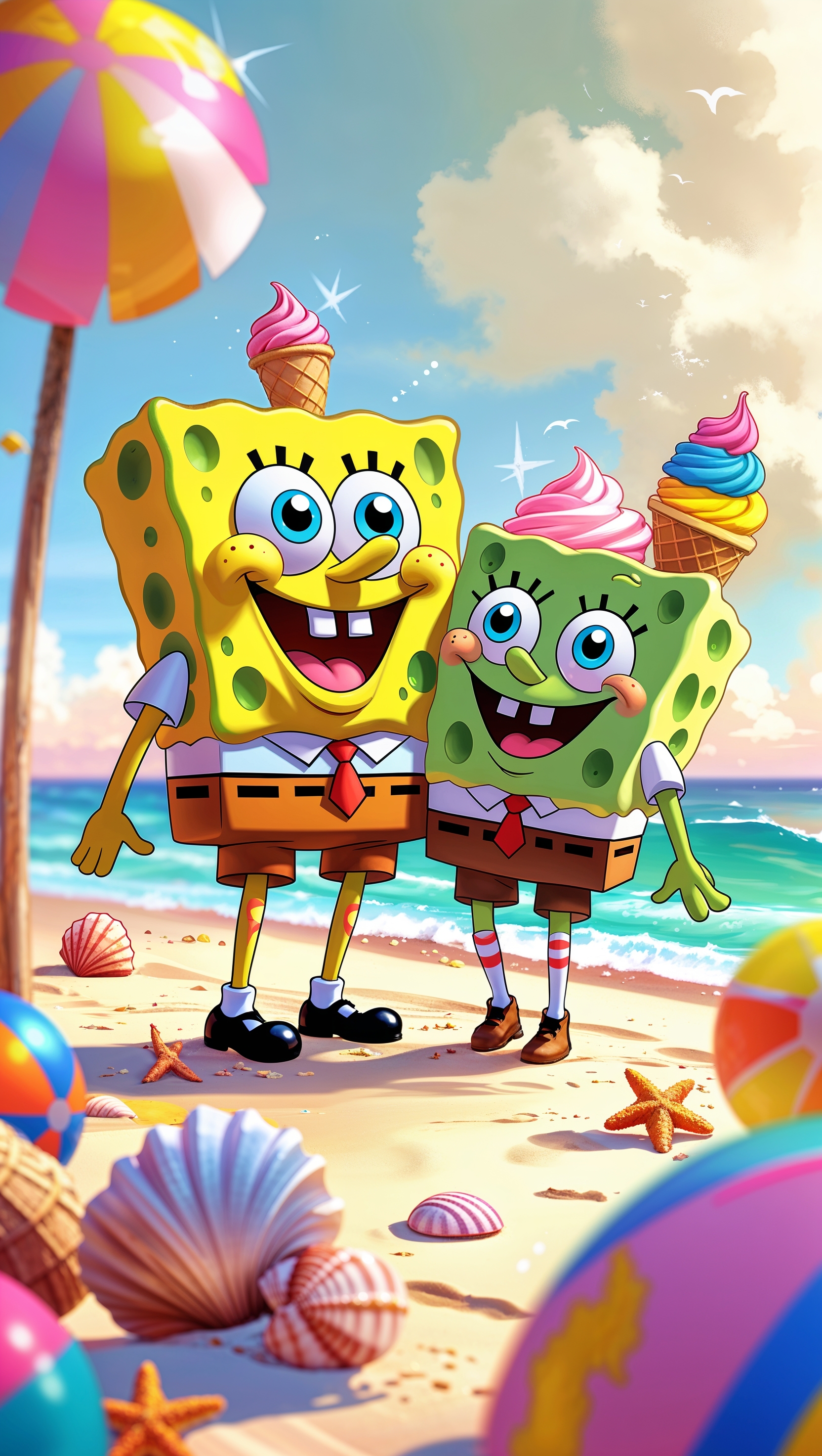1664x2944 Spongebob and Patrick eating ice cream in summer for iPhone wallpaper