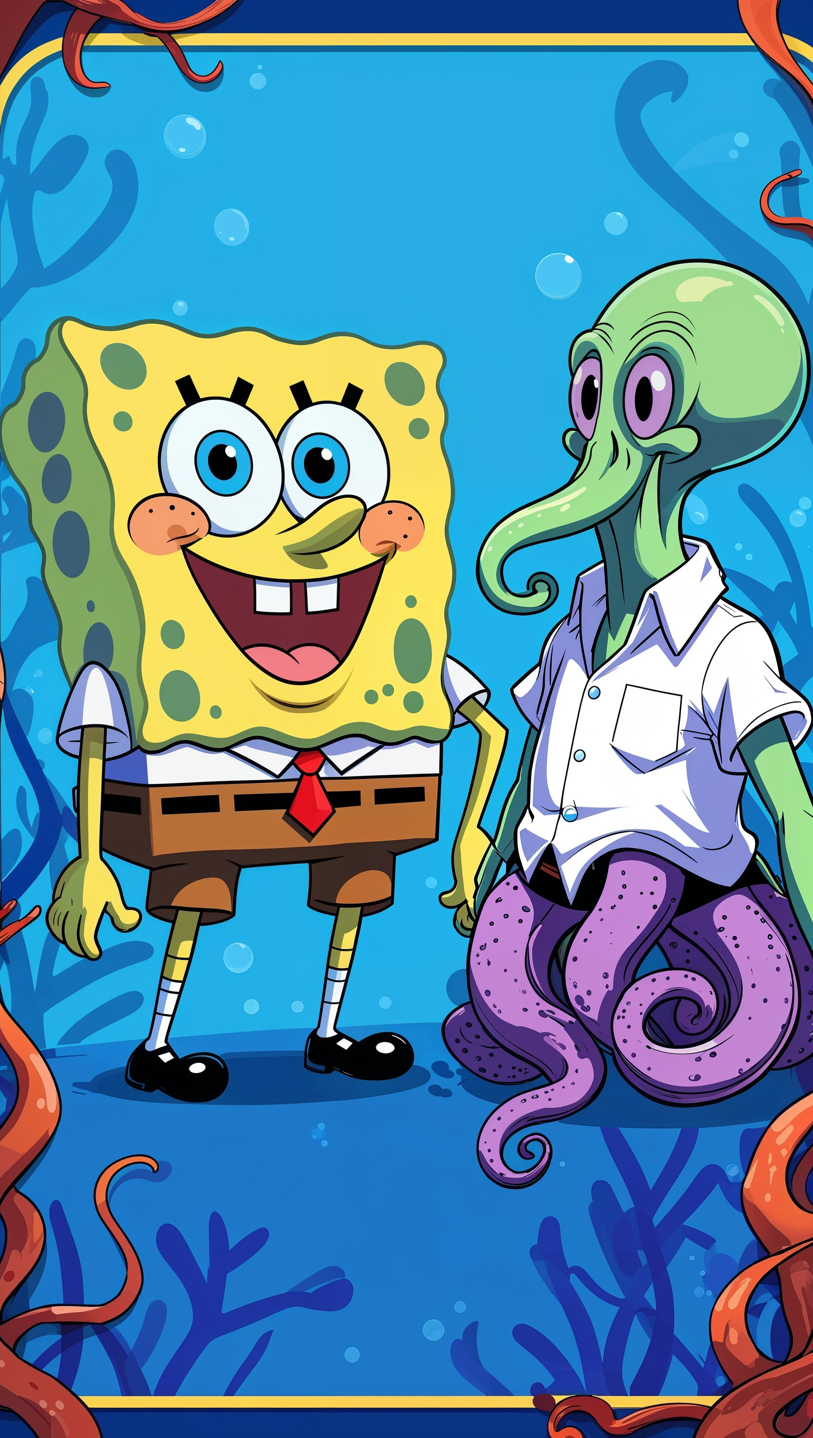 1664x2944 Spongebob smiling next to Squidward for iPhone wallpaper