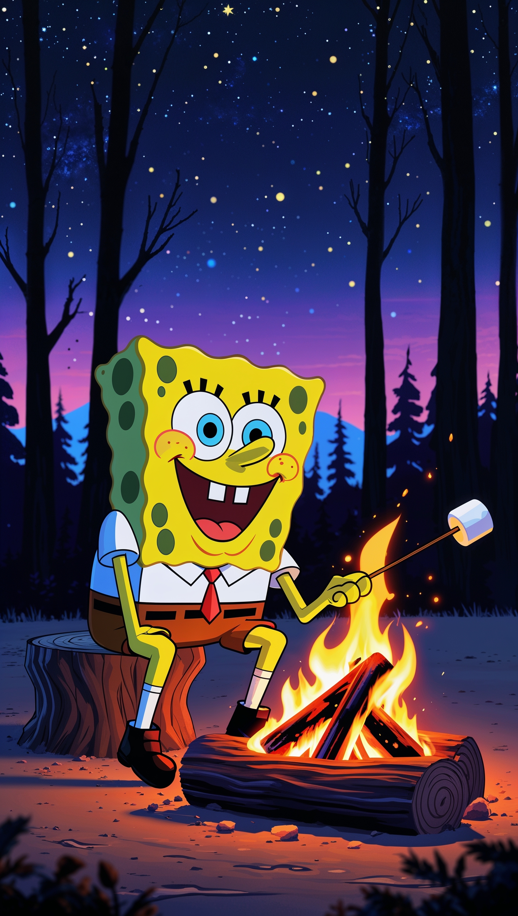 1664x2944 Spongebob at a bonfire night for iPhone wallpaper