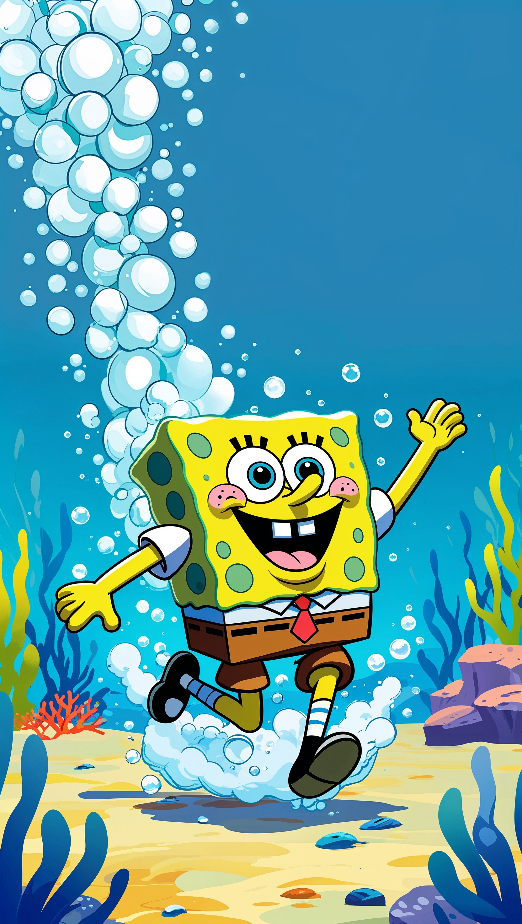 1664x2944 Spongebob running underwater with bubbles for iPhone wallpaper