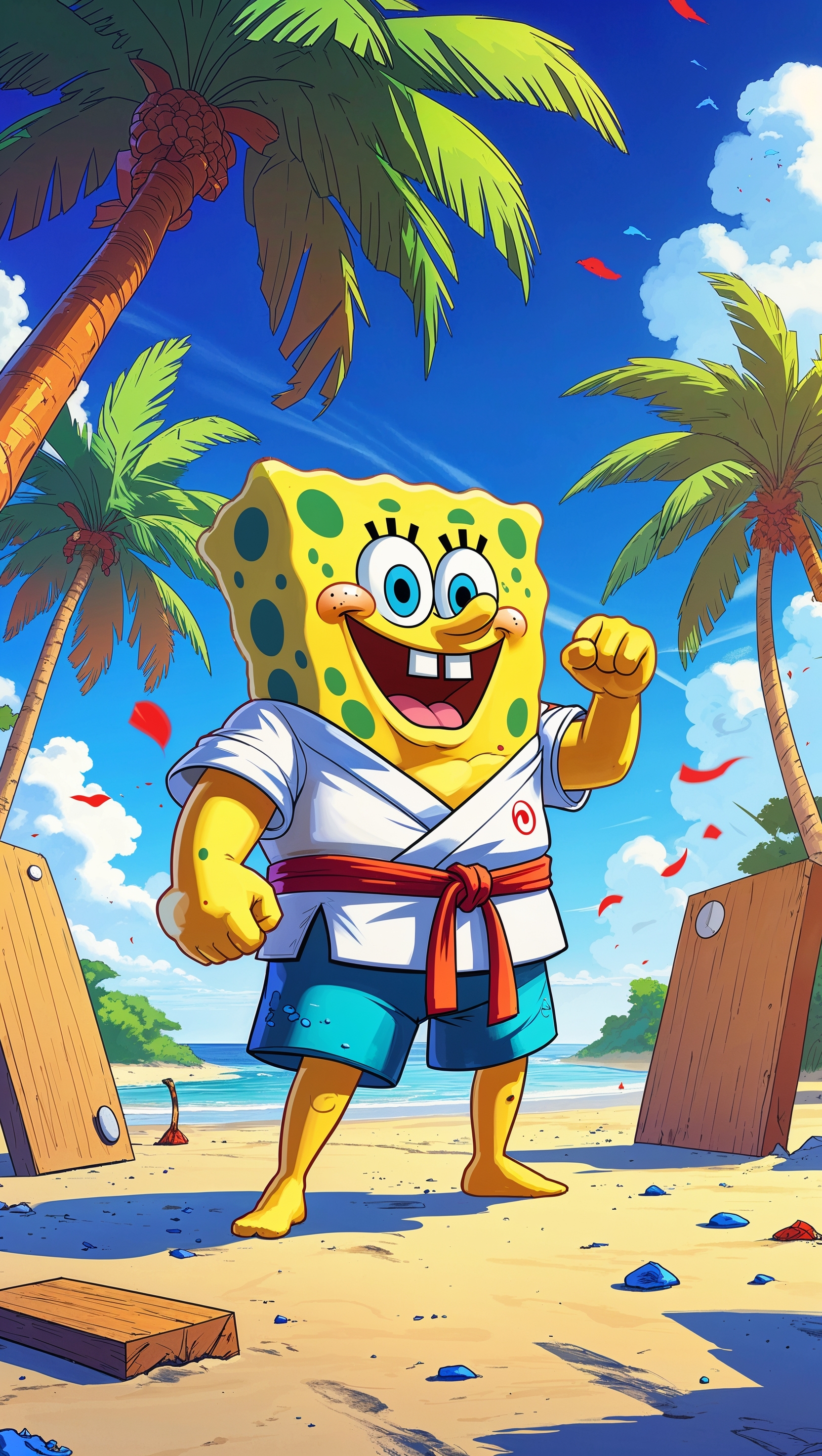 1664x2944 Spongebob practicing karate with Sandy for iPhone wallpaper