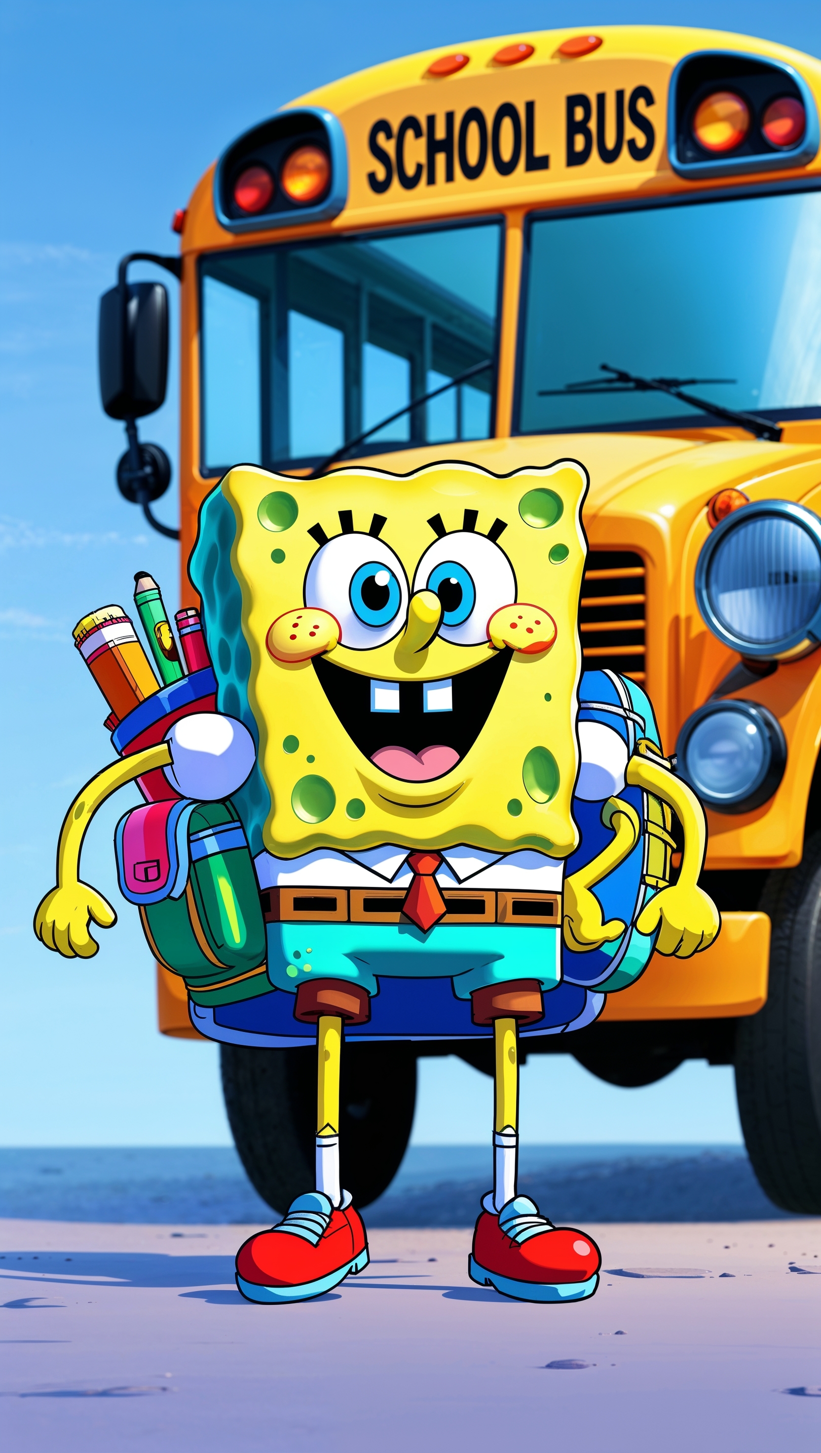 1664x2944 Spongebob on the first day of school with a backpack for iPhone wallpaper