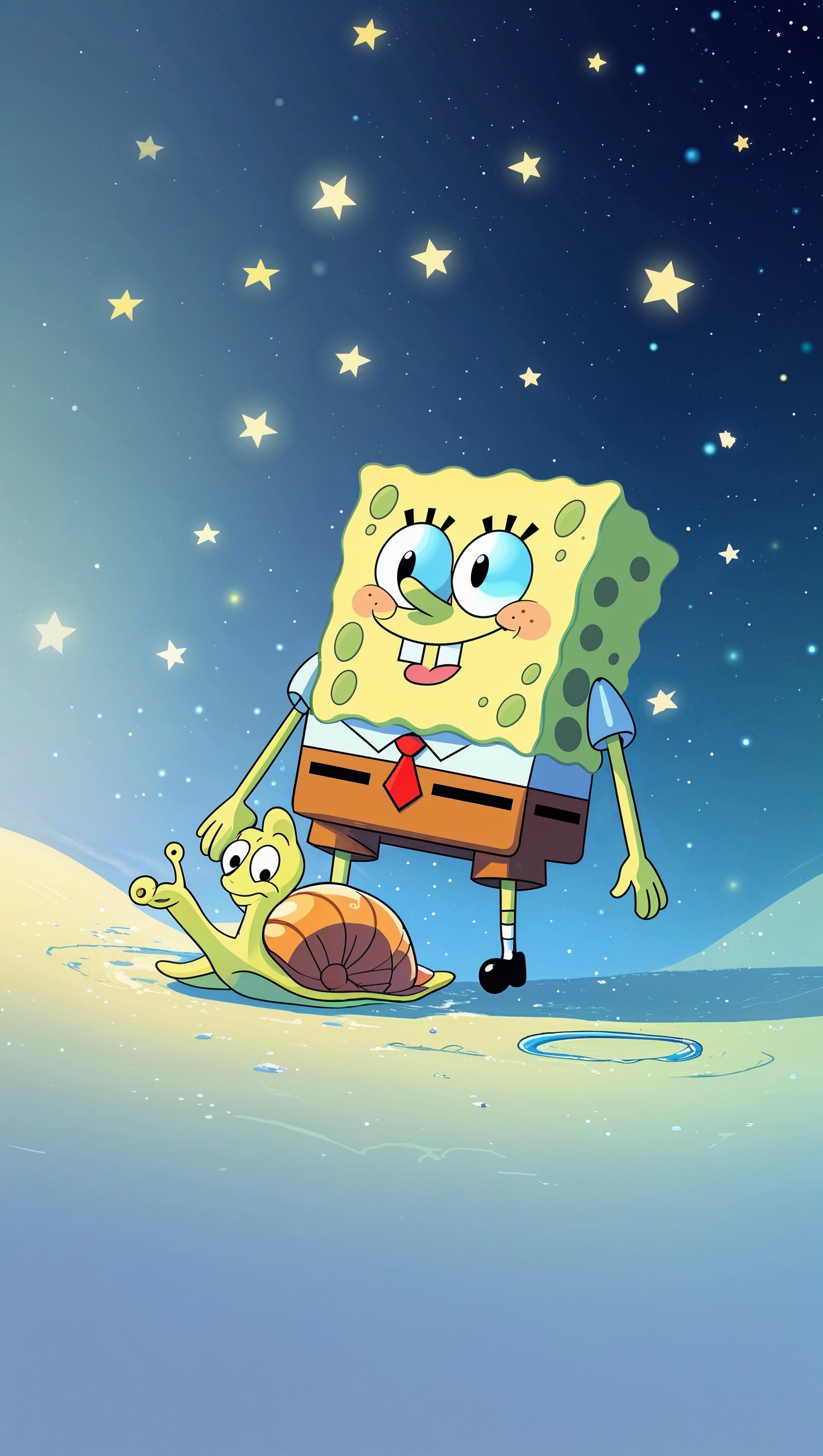 1664x2944 Spongebob and Gary sleeping under the stars for iPhone wallpaper