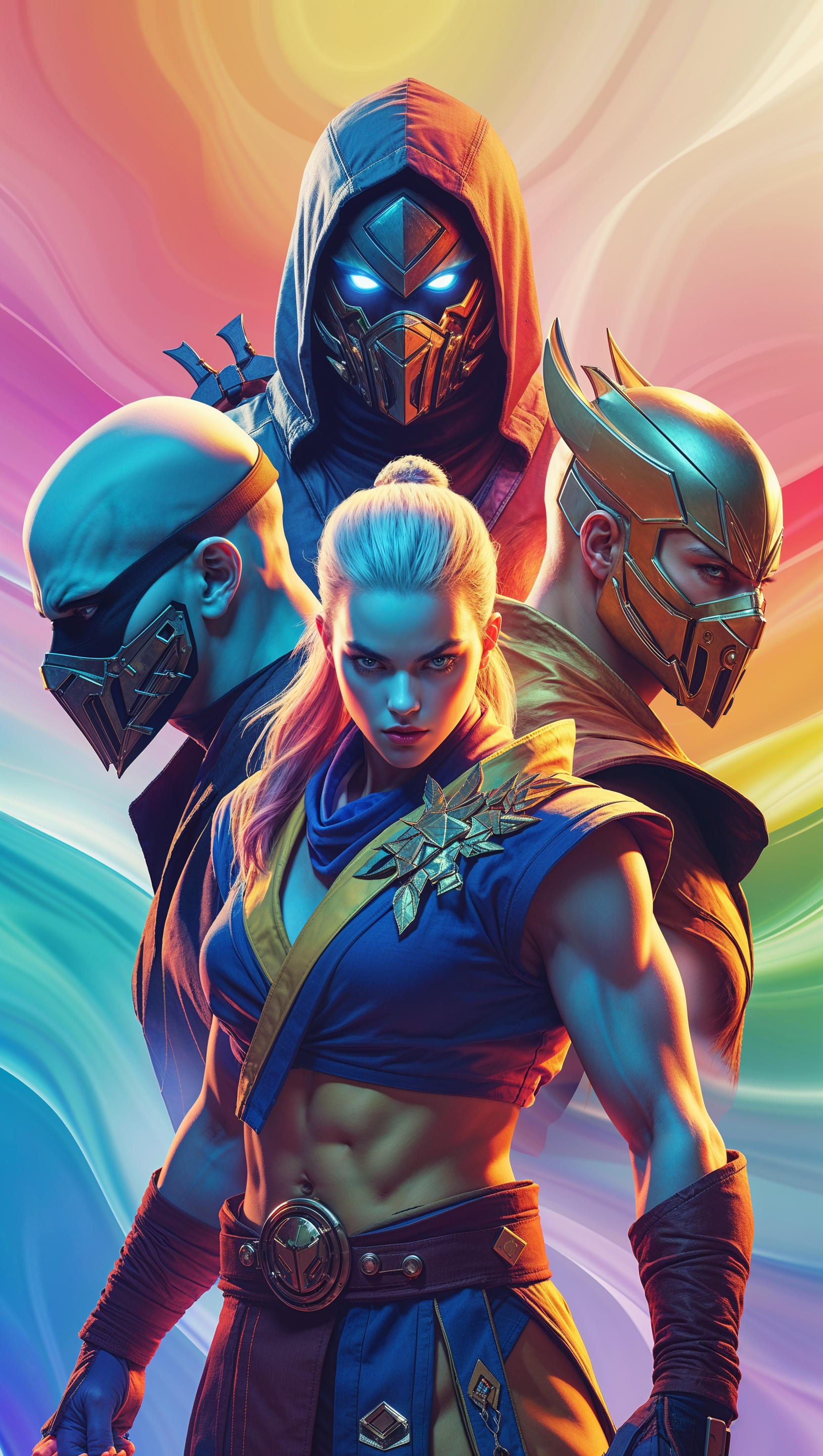 Mortal Kombat characters combined with rainbow background iPhone wallpaper 1664x2944 Mortal Kombat characters combined with rainbow background iPhone wallpaper