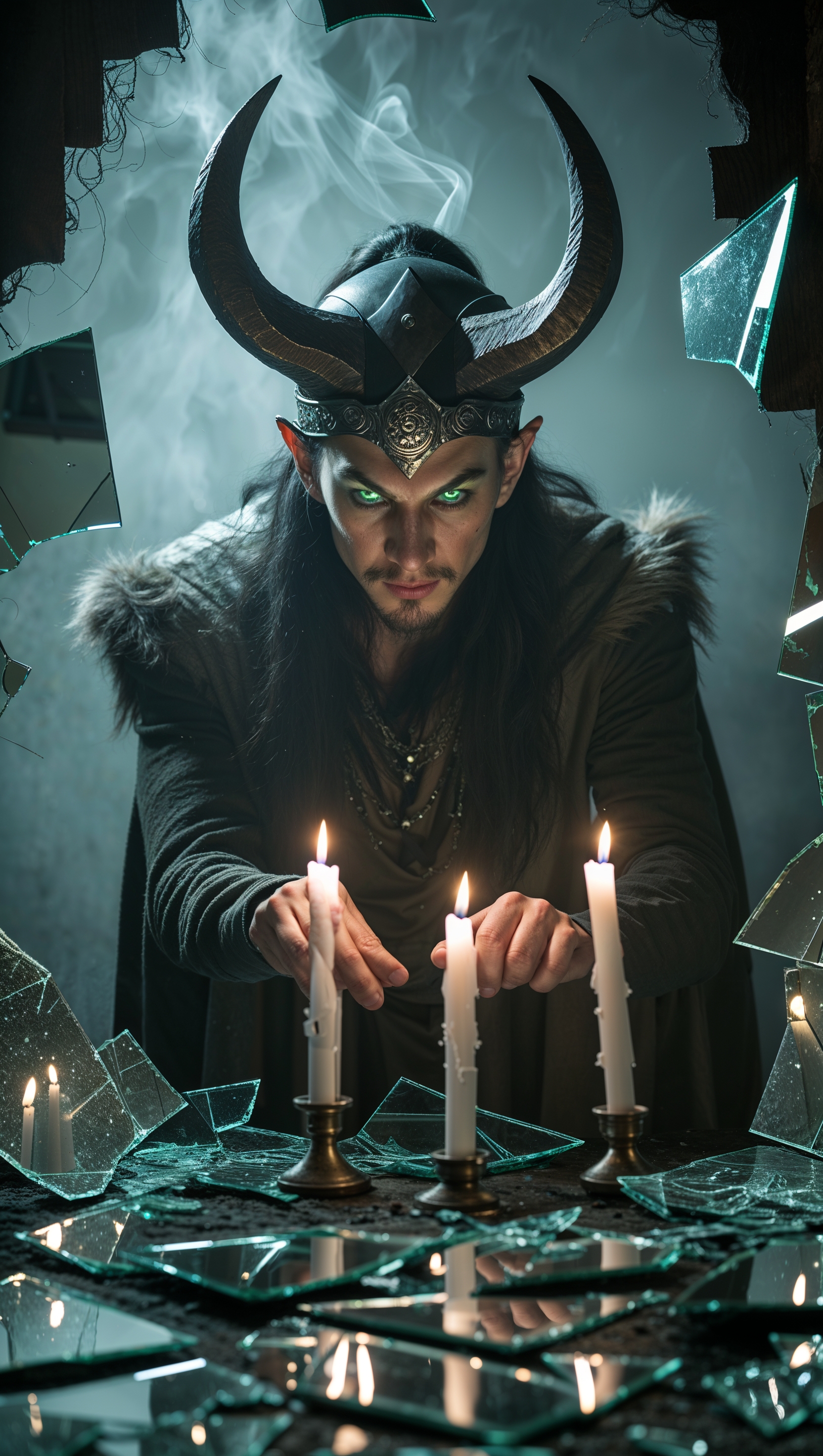 1664x2944 Loki wearing a golden crown surrounded by magical mist