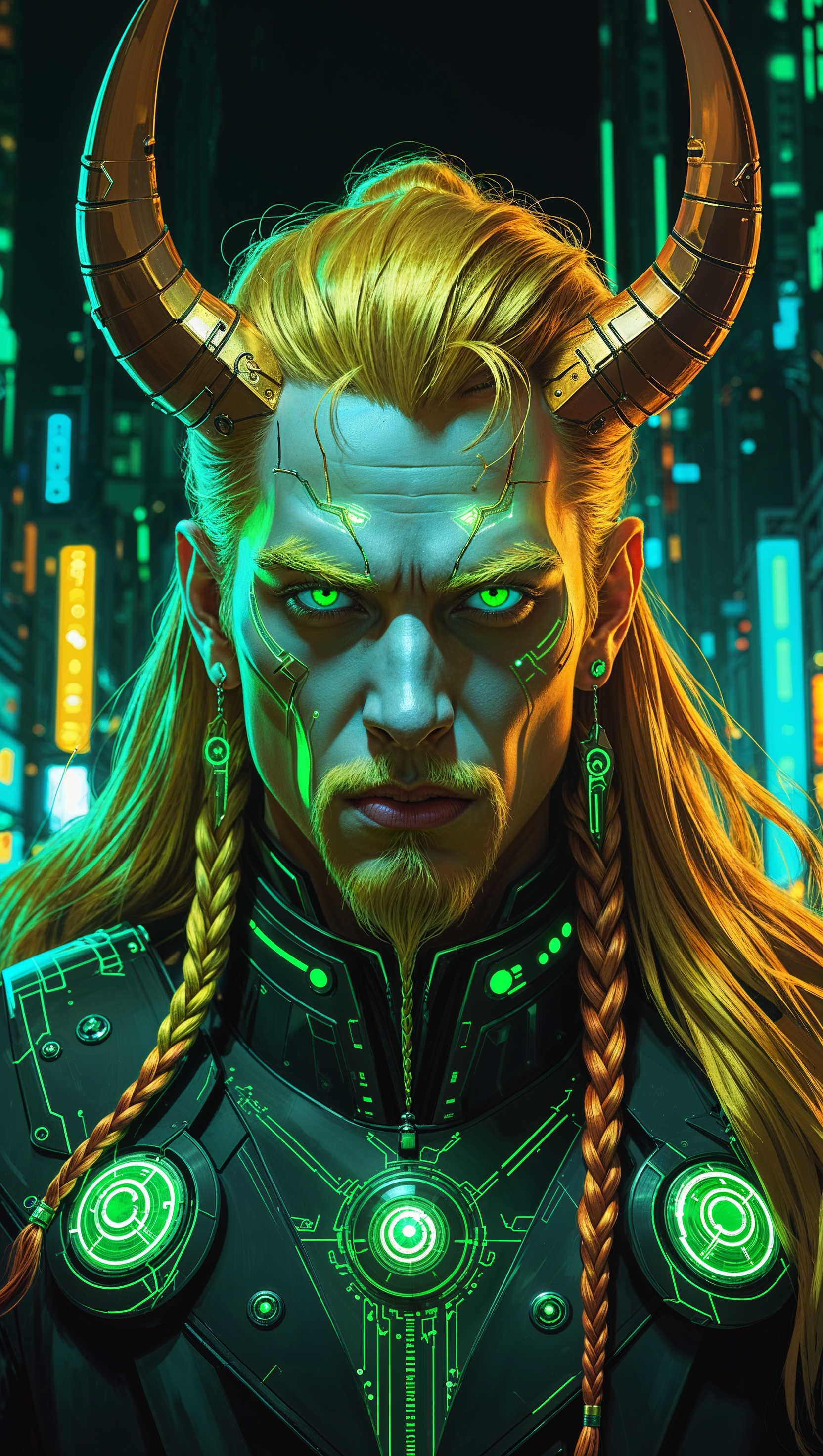 1664x2944 Cyberpunk Loki with yellow and green tones