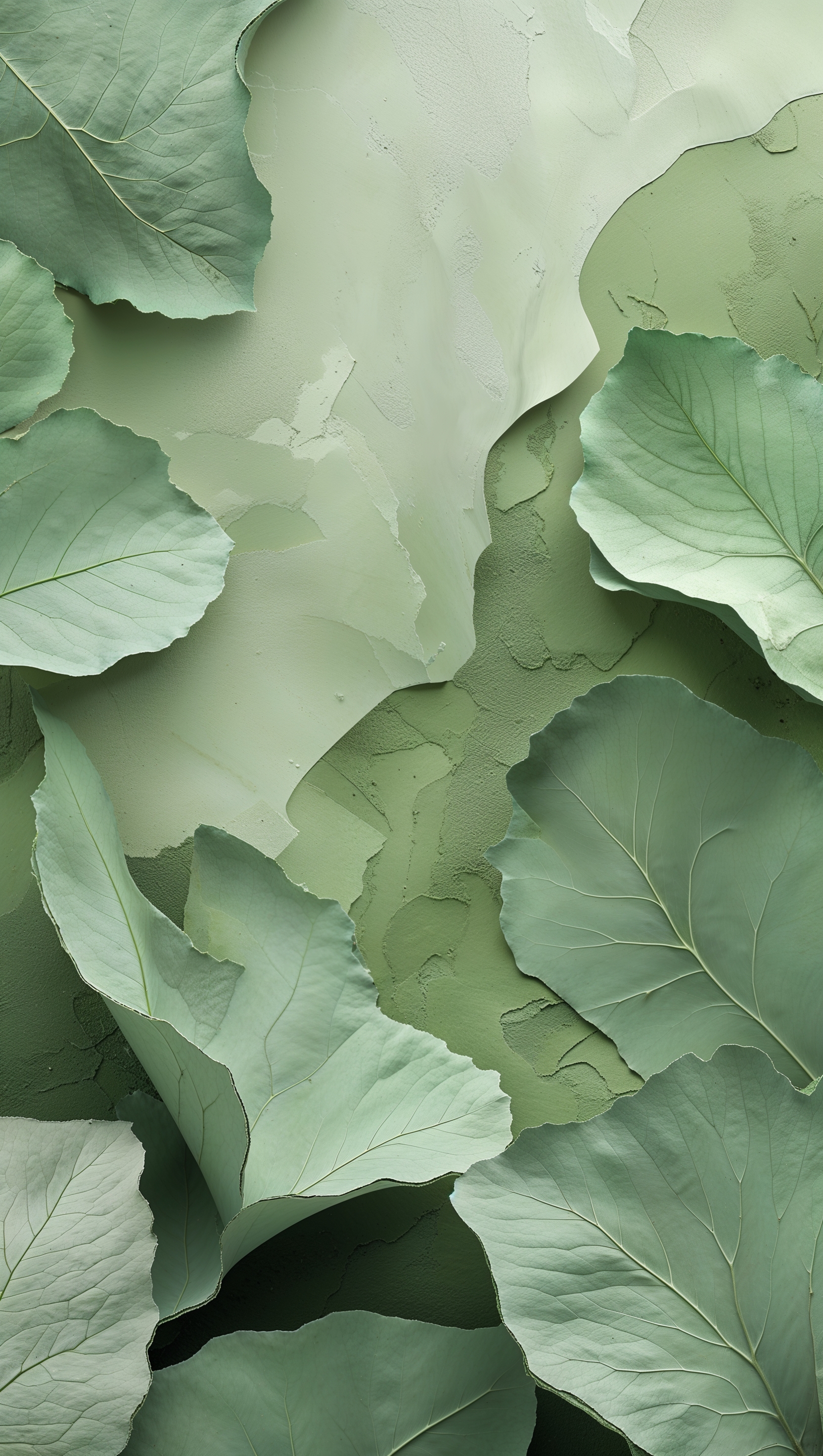 1664x2944 Nature-inspired green tones with soft textures and abstract leaf patterns