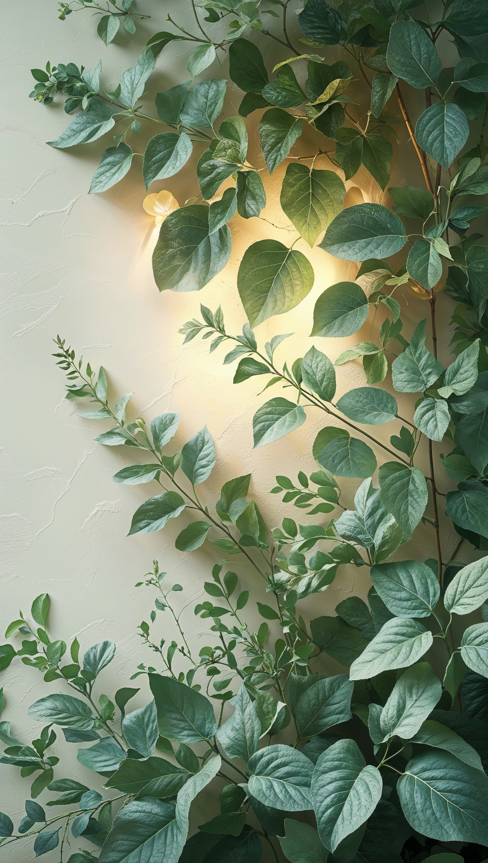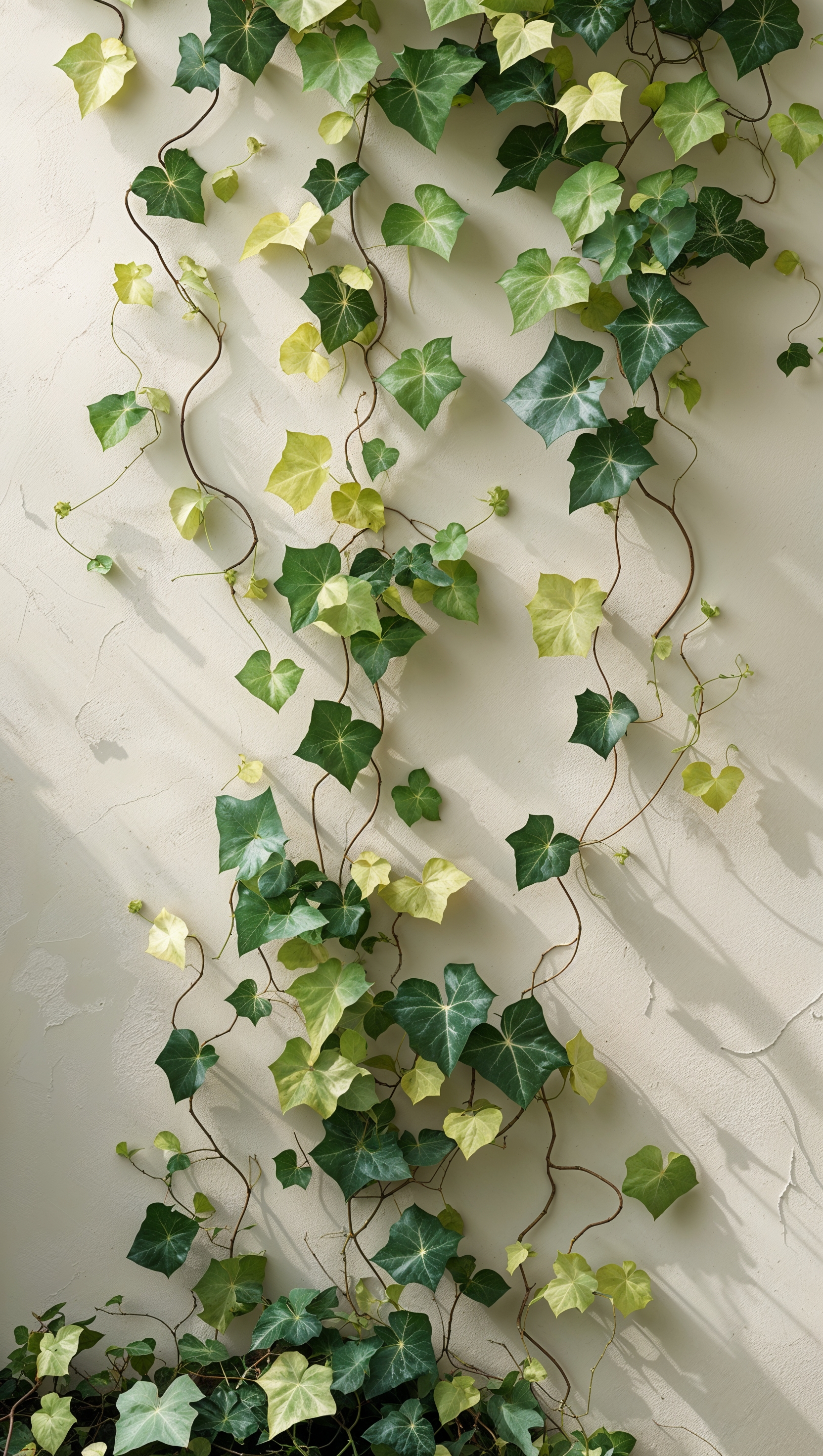 1664x2944 Natural ivy vines climbing vertically on a neutral wall, minimal style