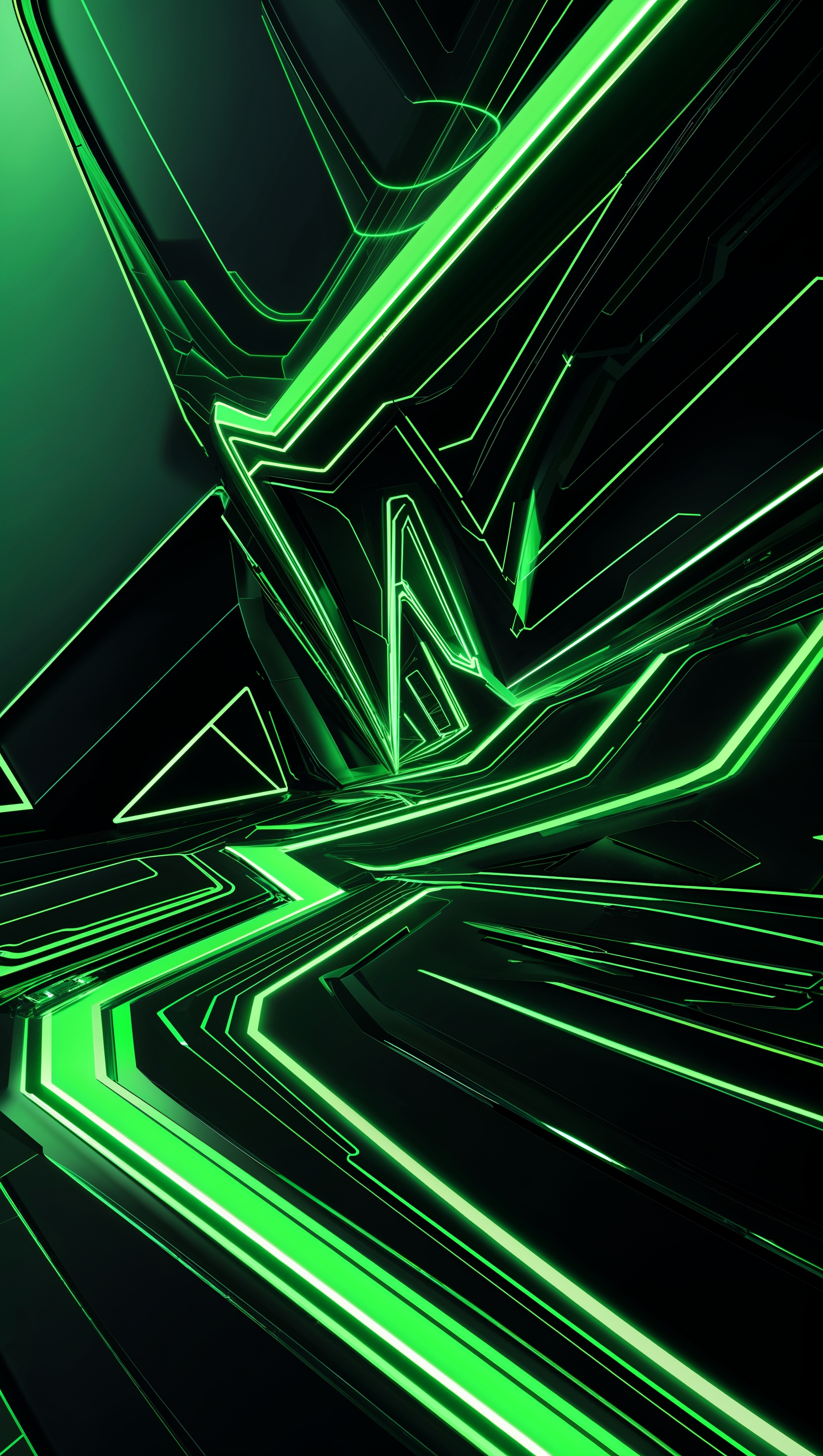 1664x2944 Neon green futuristic pattern on black background, perfect for AMOLED screens