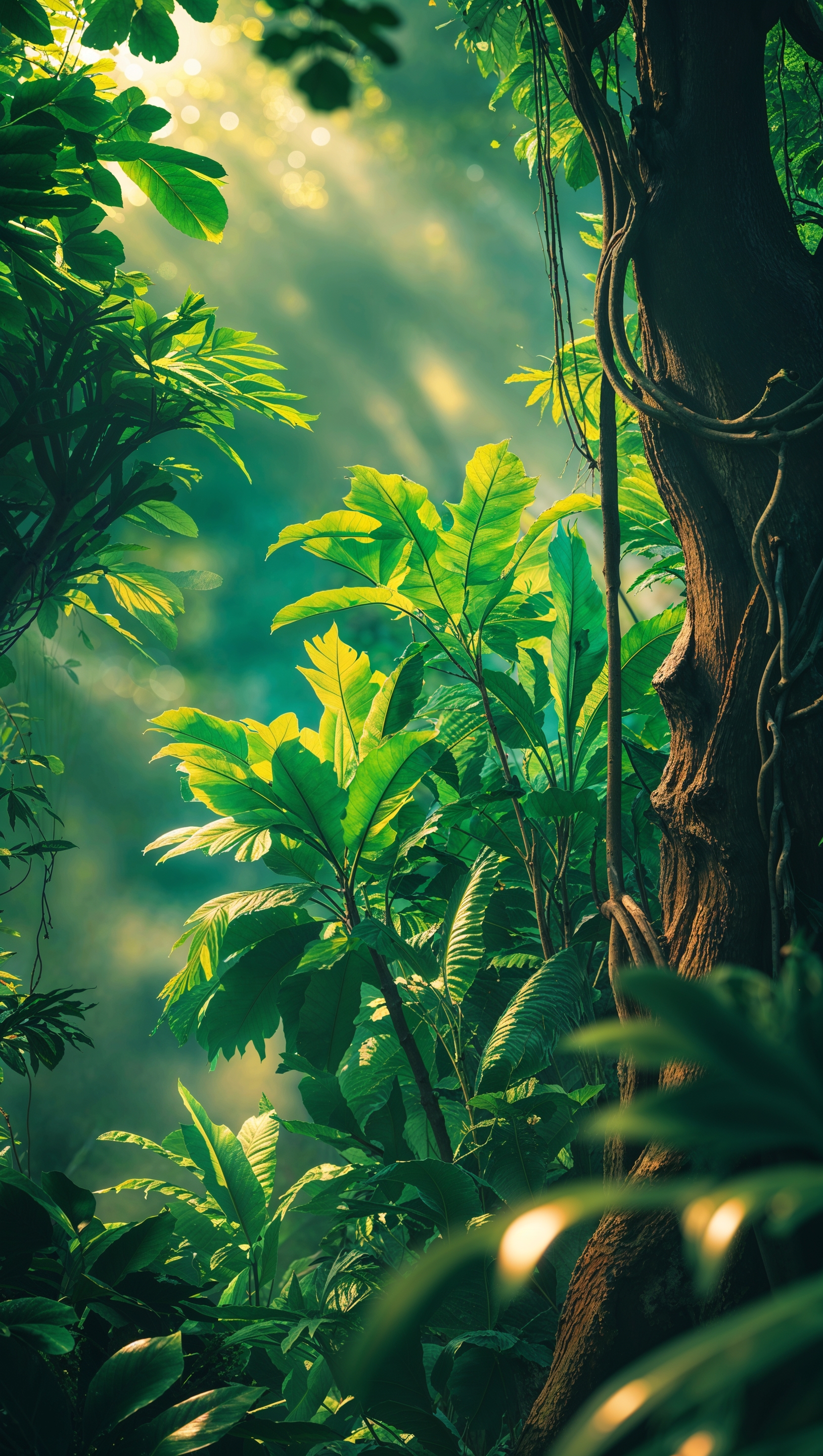 1664x2944 Lush jungle foliage in rich green hues, cinematic depth of field