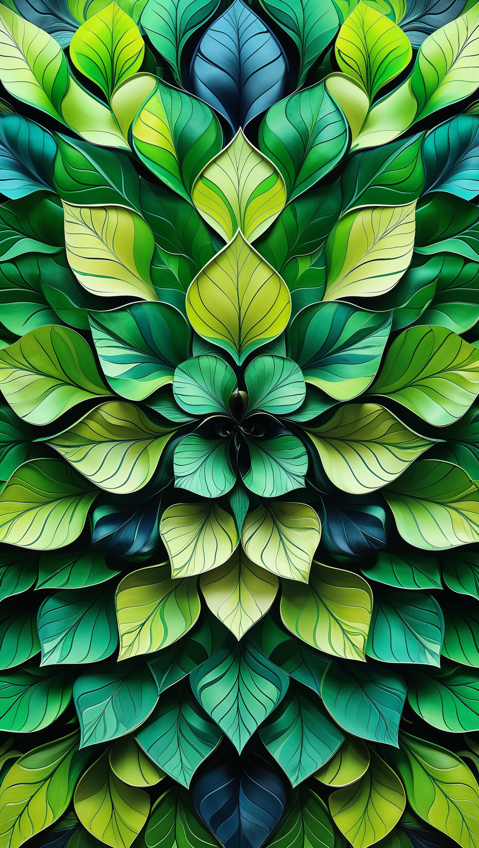 1664x2944 Symmetrical mandala made from overlapping green leaves, centered layout