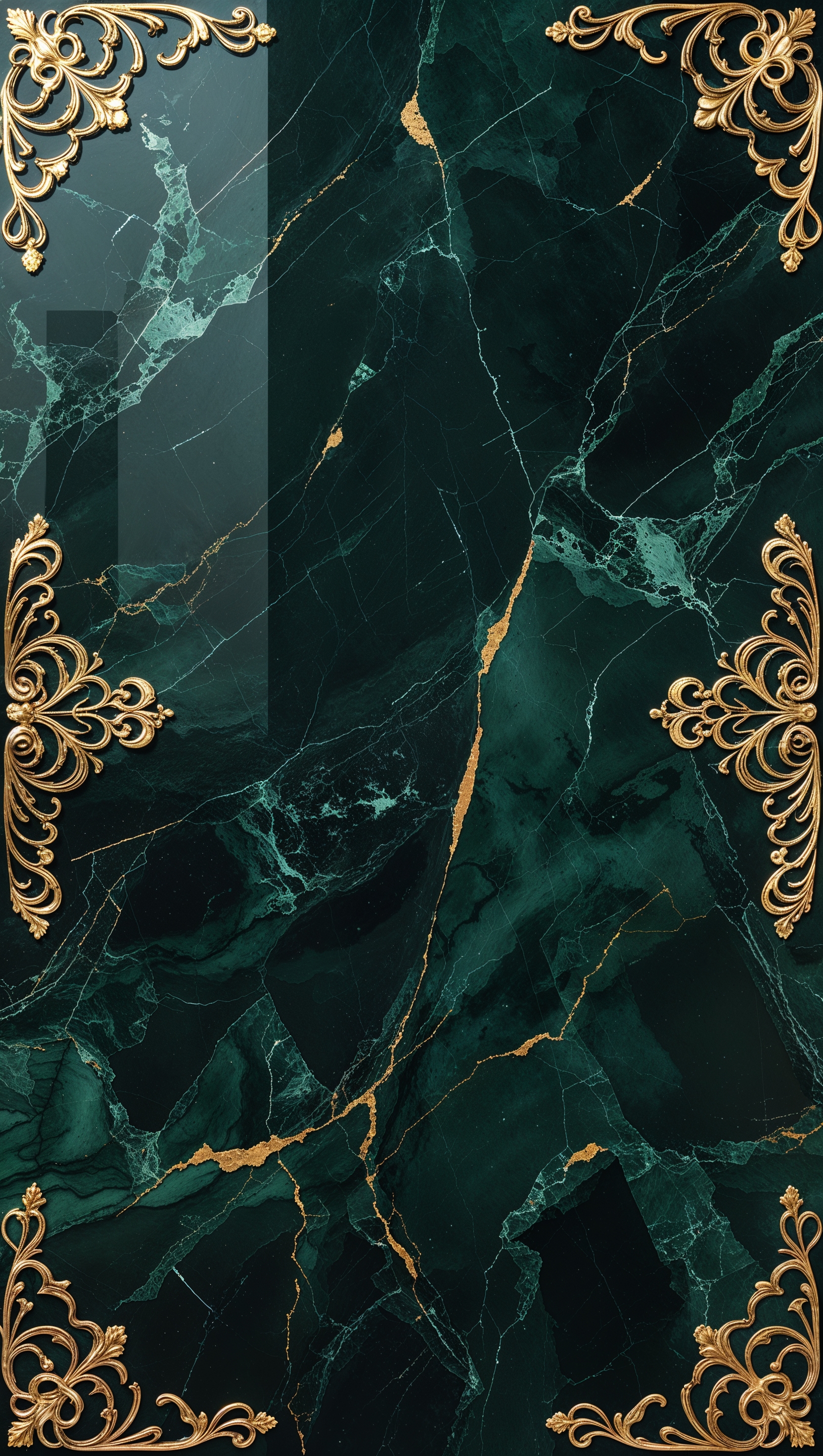 1664x2944 Elegant dark green marble texture with gold accents and clean symmetry
