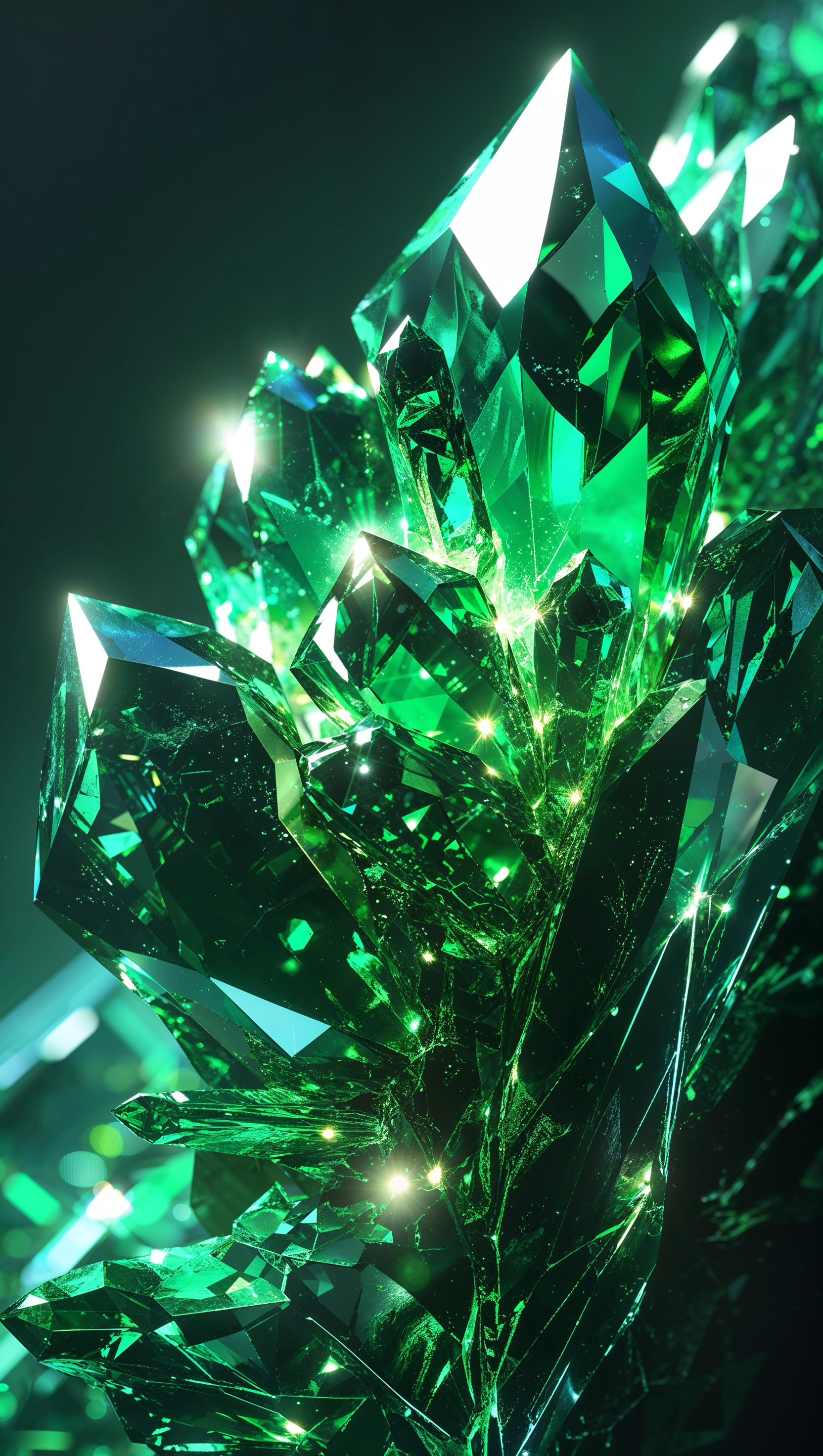 1664x2944 Crystal-like green abstract pattern with refracted light effects