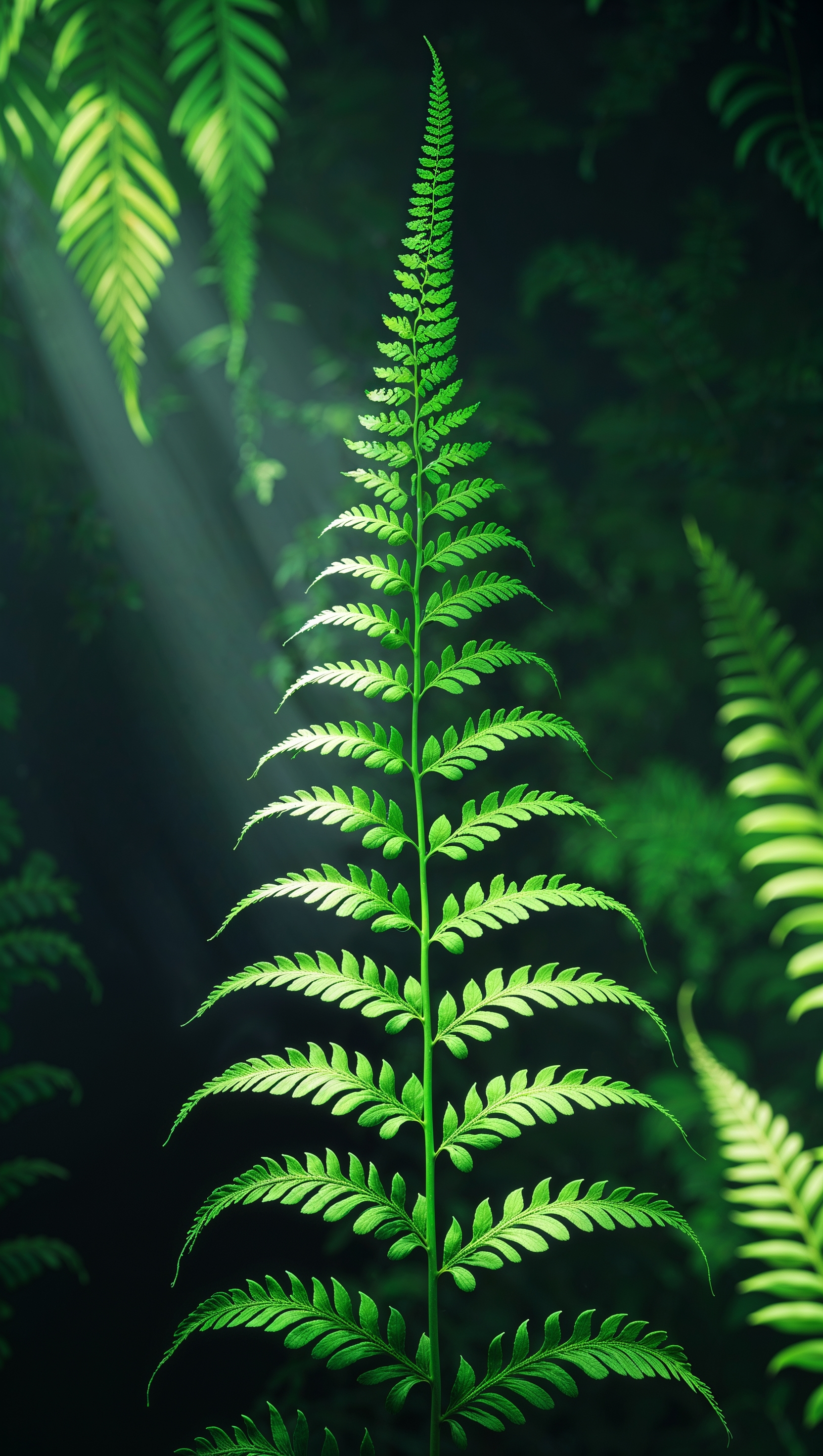 1664x2944 Vertical fern leaf design in bright green with soft shadows