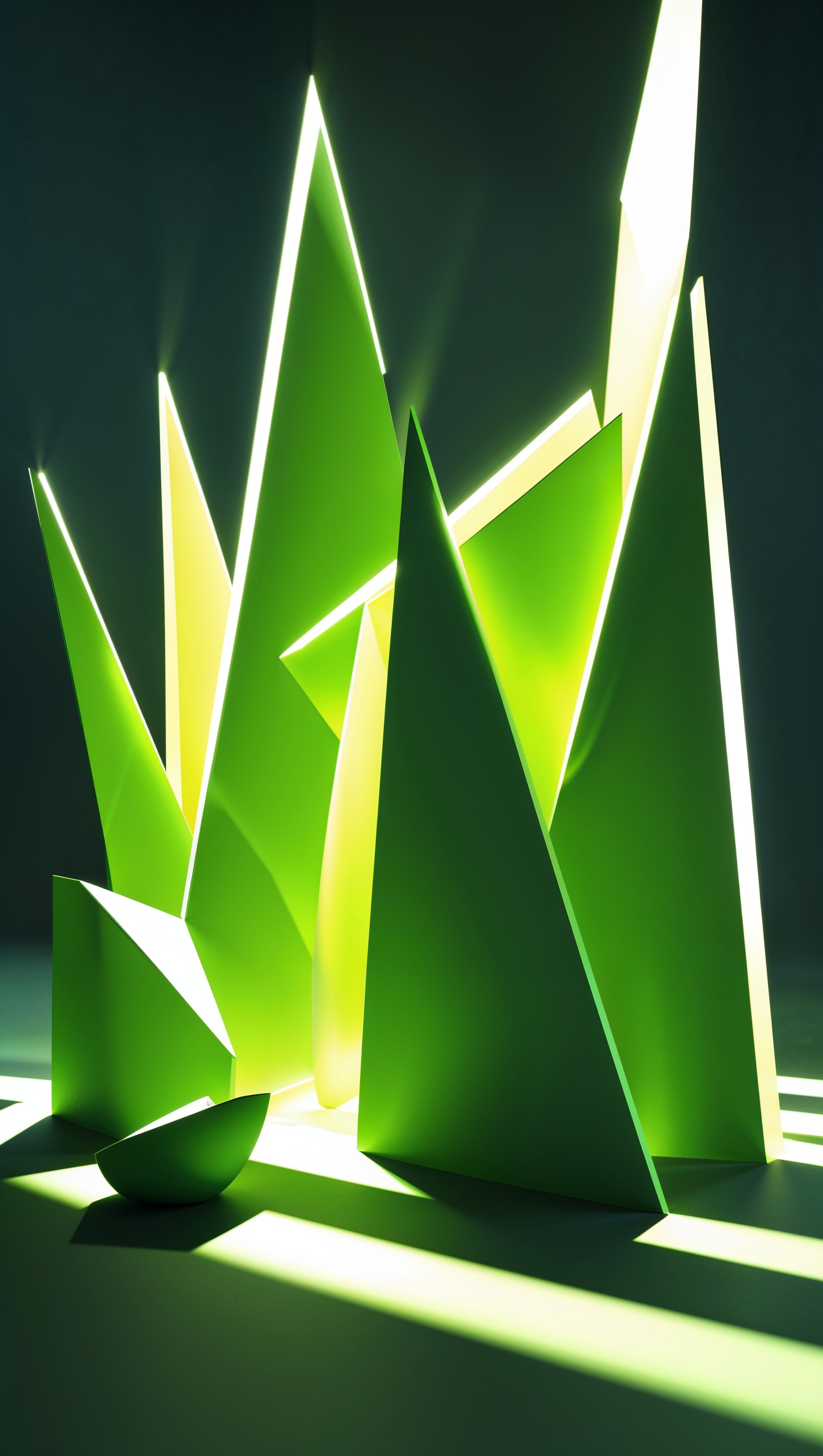 1664x2944 Vibrant lime green abstract shapes with sharp lighting contrasts