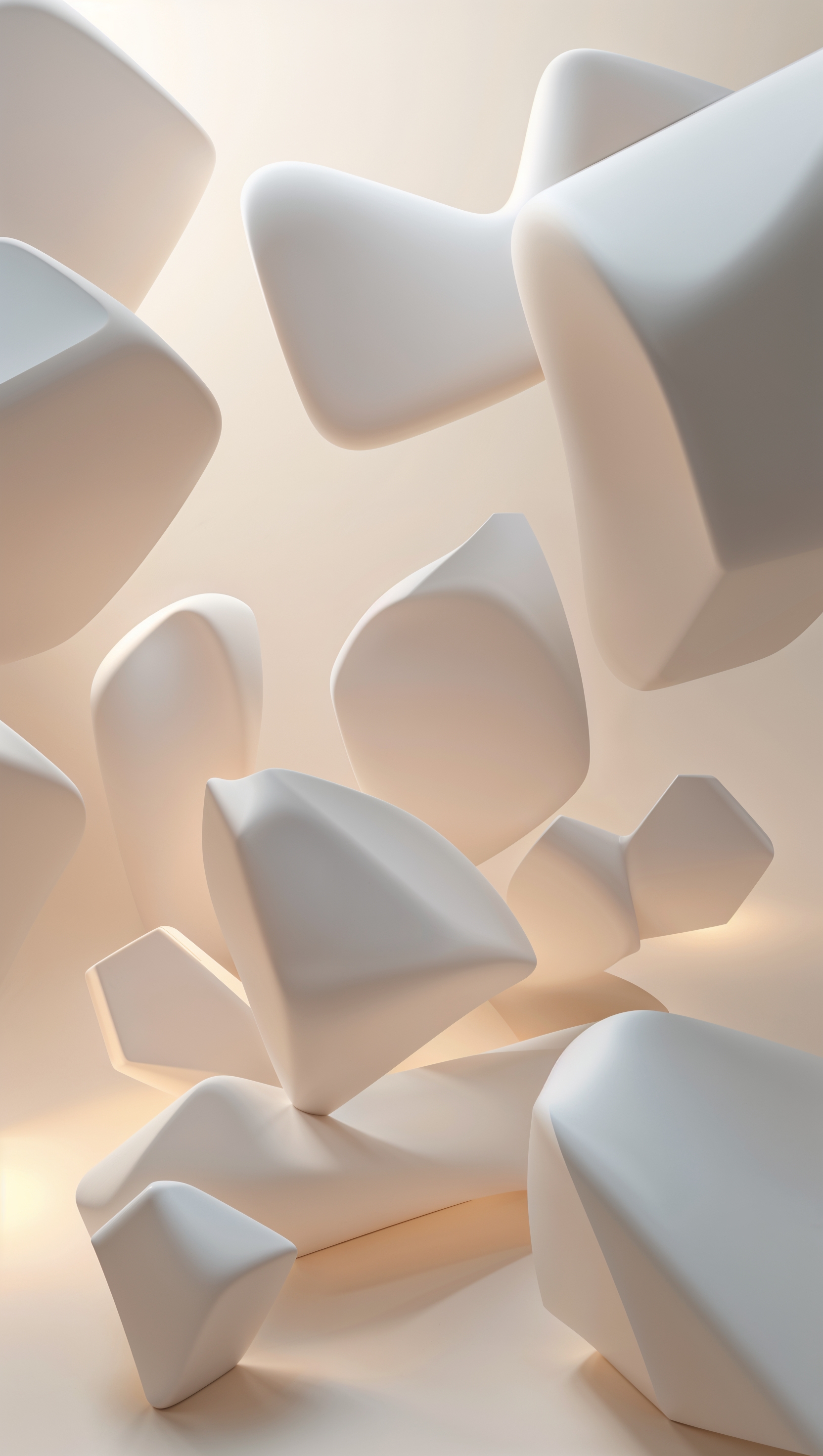 1664x2944 Abstract 3D white shapes with smooth lighting and subtle depth