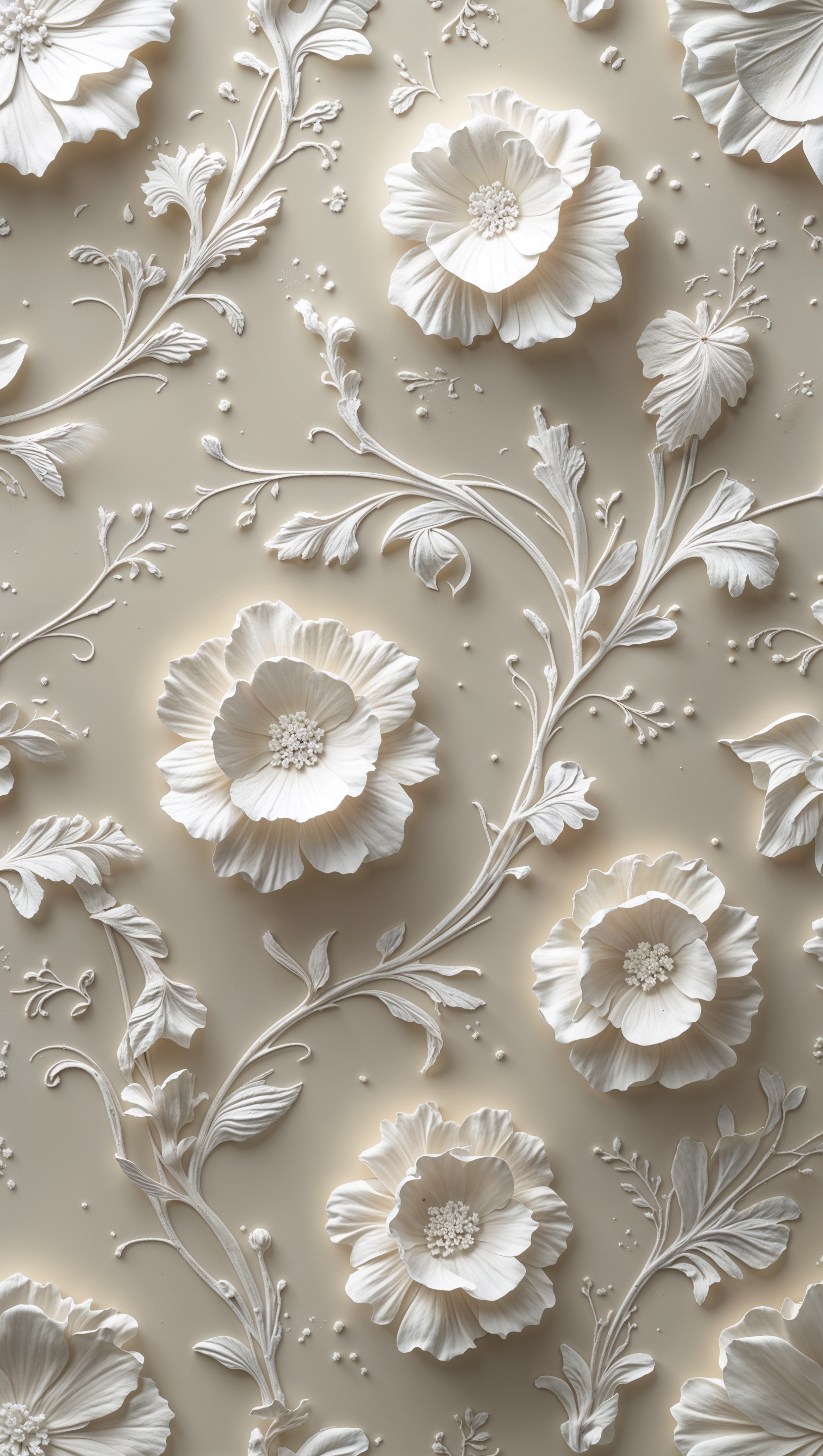 1664x2944 High-key white background with faded floral outlines, very light and elegant
