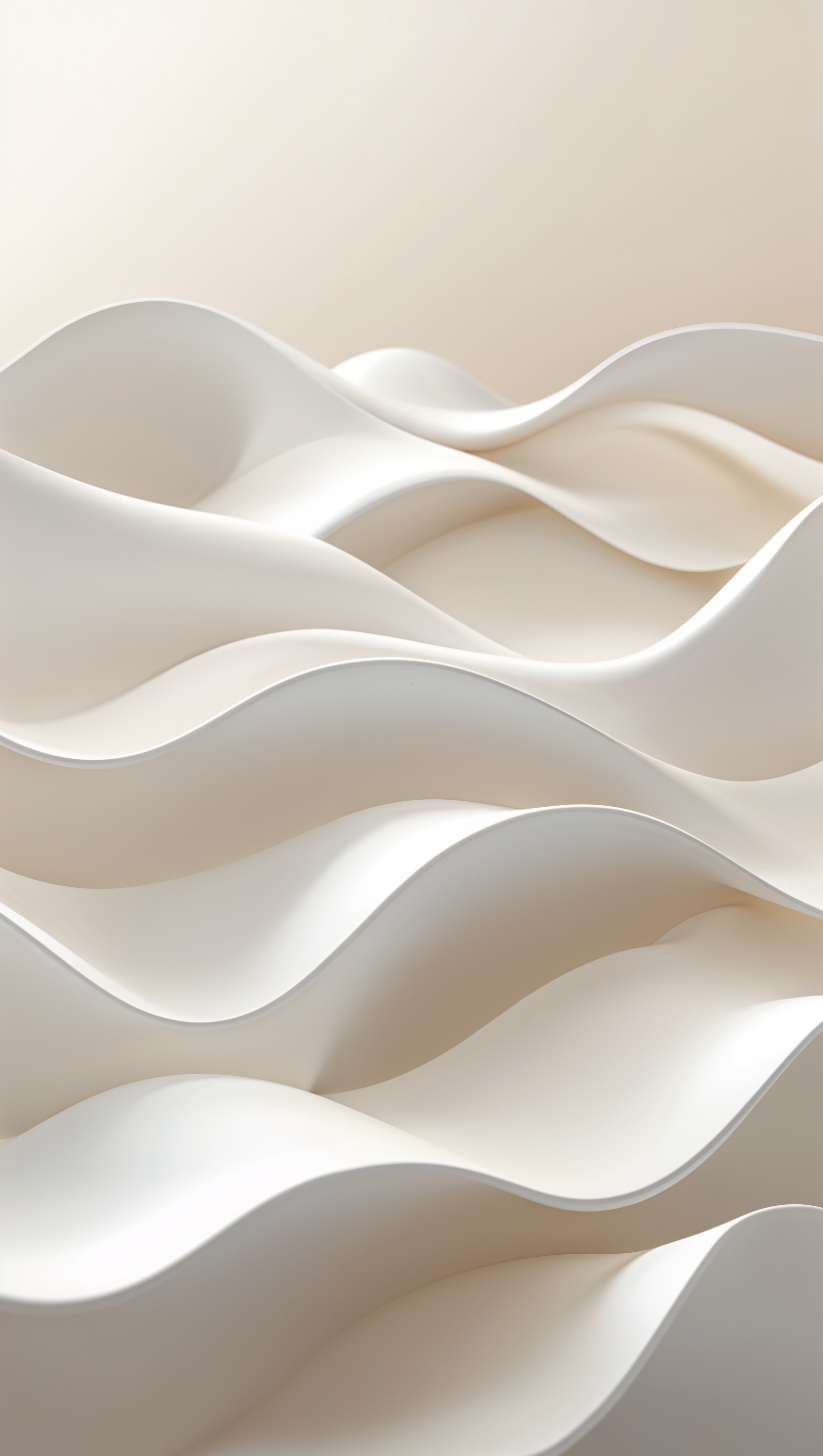 1664x2944 Minimal white wave pattern in 3D with soft curves and depth of field