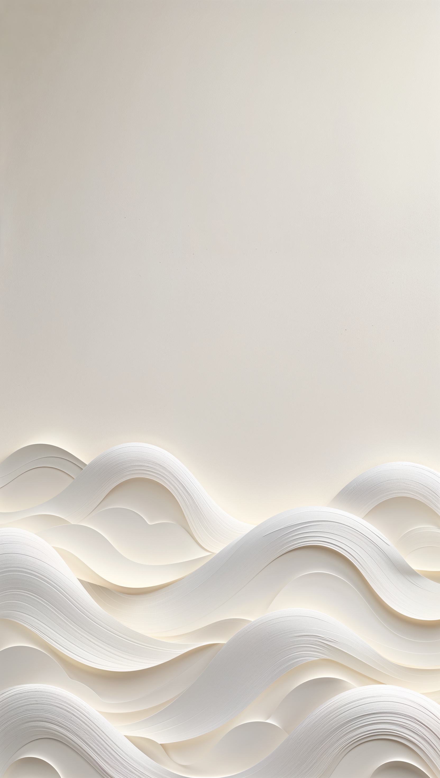 1664x2944 Minimal Japanese-style wallpaper with white waves and negative space