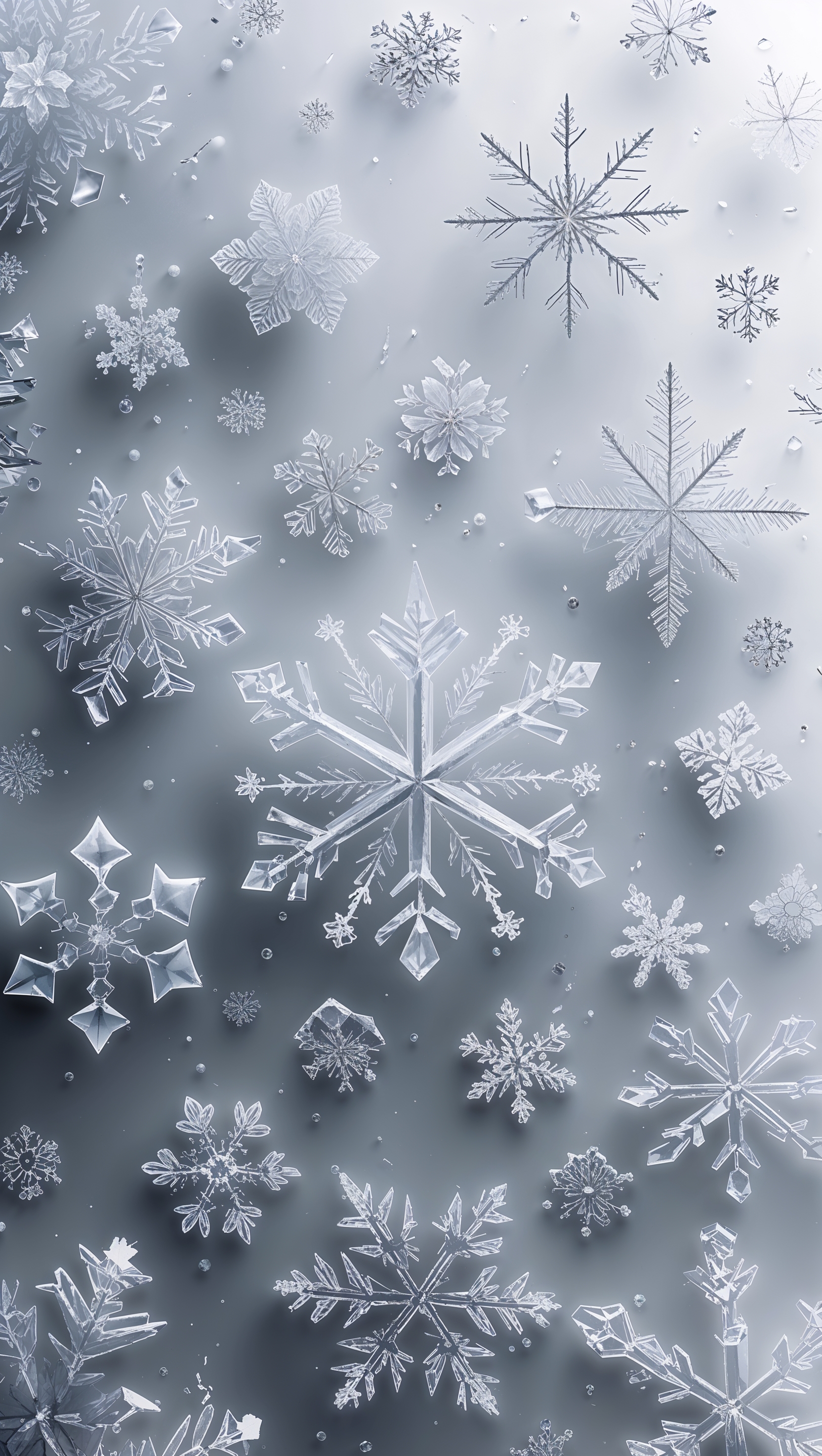 1664x2944 Delicate snowflake patterns in soft grayscale over pure white background