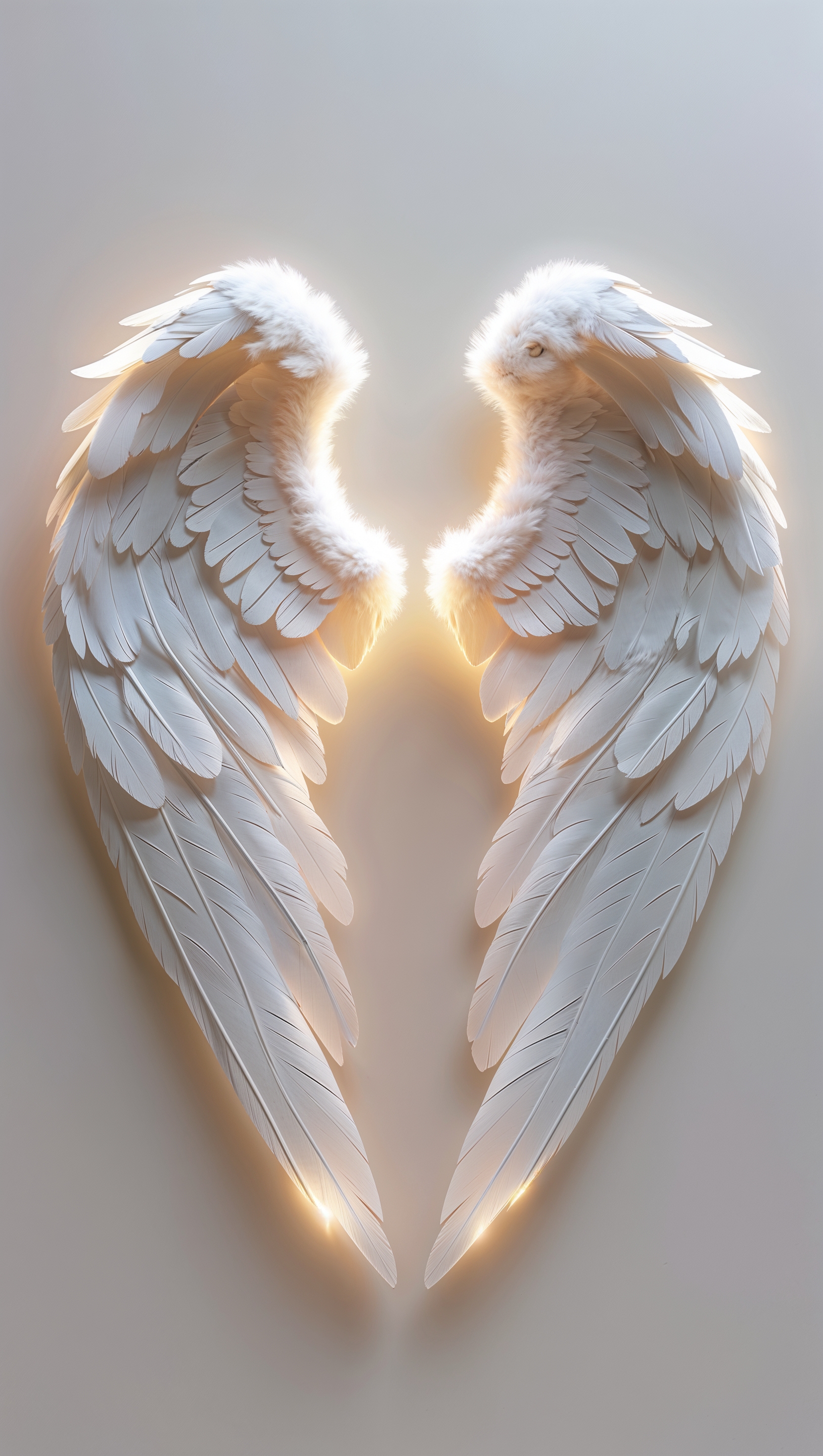 1664x2944 White iPhone wallpaper with angel wings shape in soft light