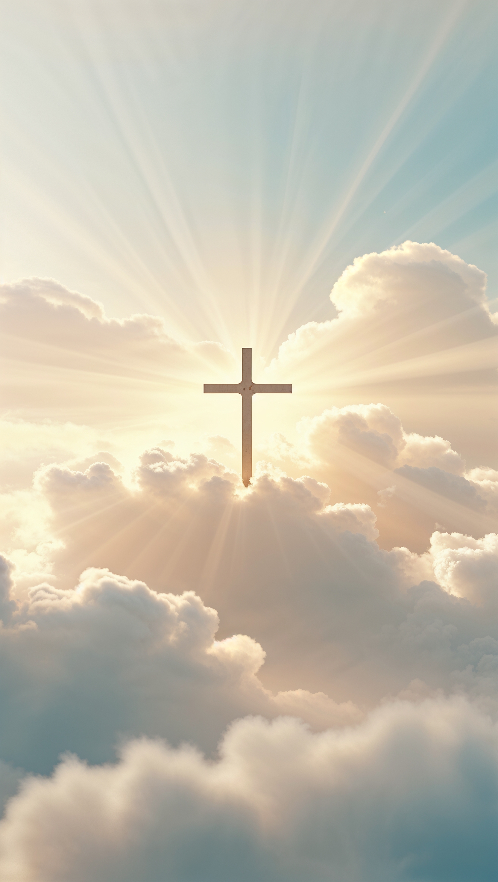 1664x2944 Minimalist cross in golden light over a soft cloud background, vertical iPhone layout
